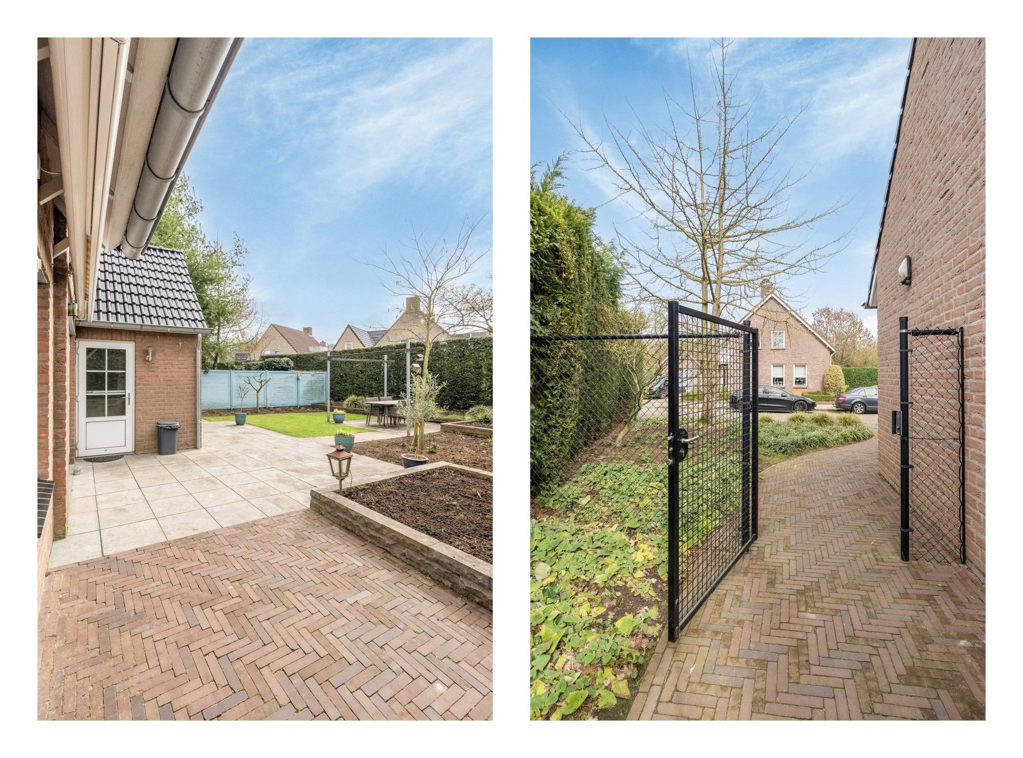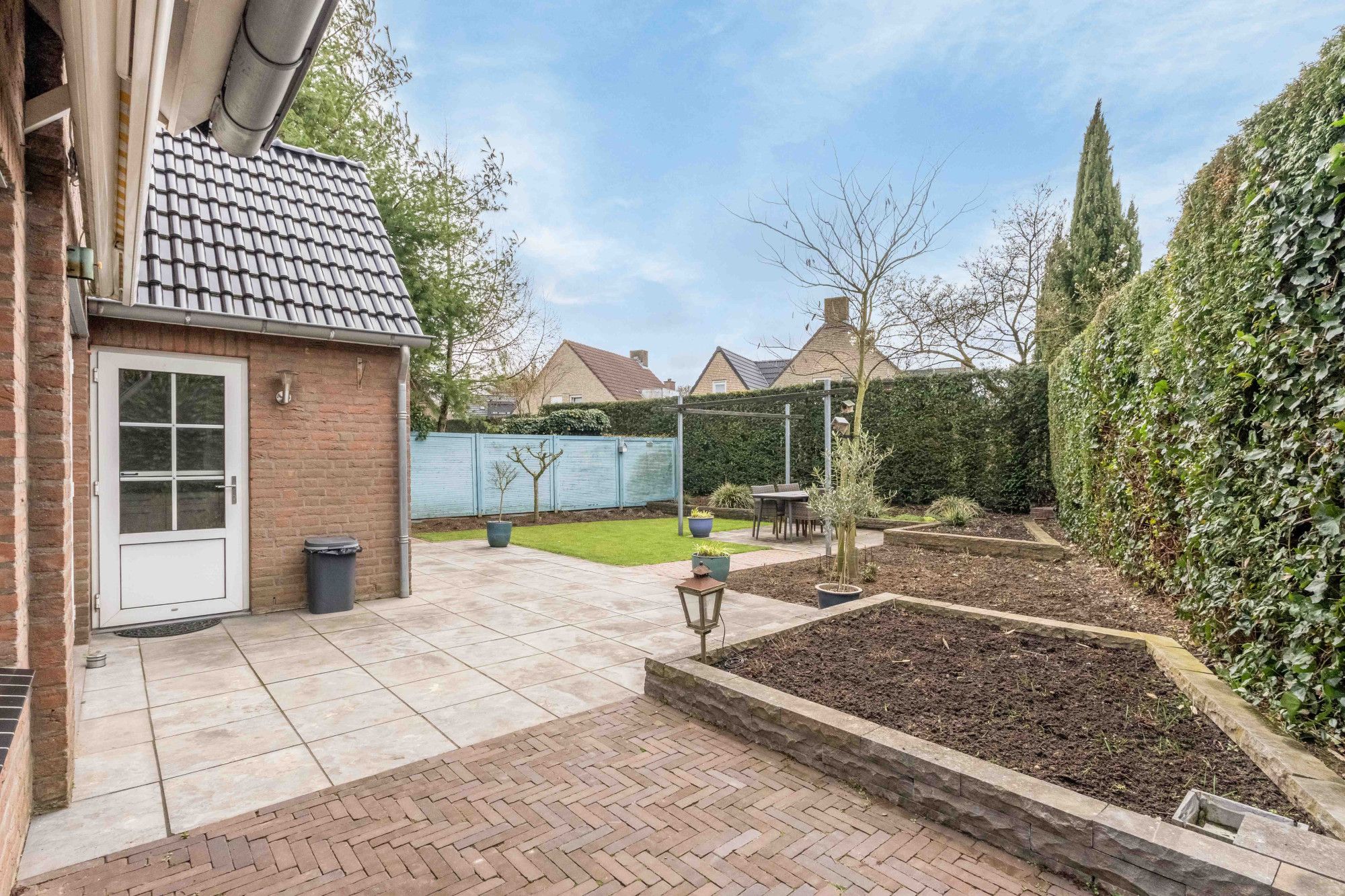 De woning beschikt over een grote en verzorgde achtertuin op het zuiden met vrije achterom, voorzien van een afsluitbare poort. De combinatie van privacy en ruimte maakt het tot een perfecte buitenruimte voor gezinnen en tuinliefhebbers. De voor- en de zijtuin zijn in 2022 onder architectuur opnieuw aangelegd. Daarbij heeft ook de oprit en de achterom een nieuwe bestrating gekregen.