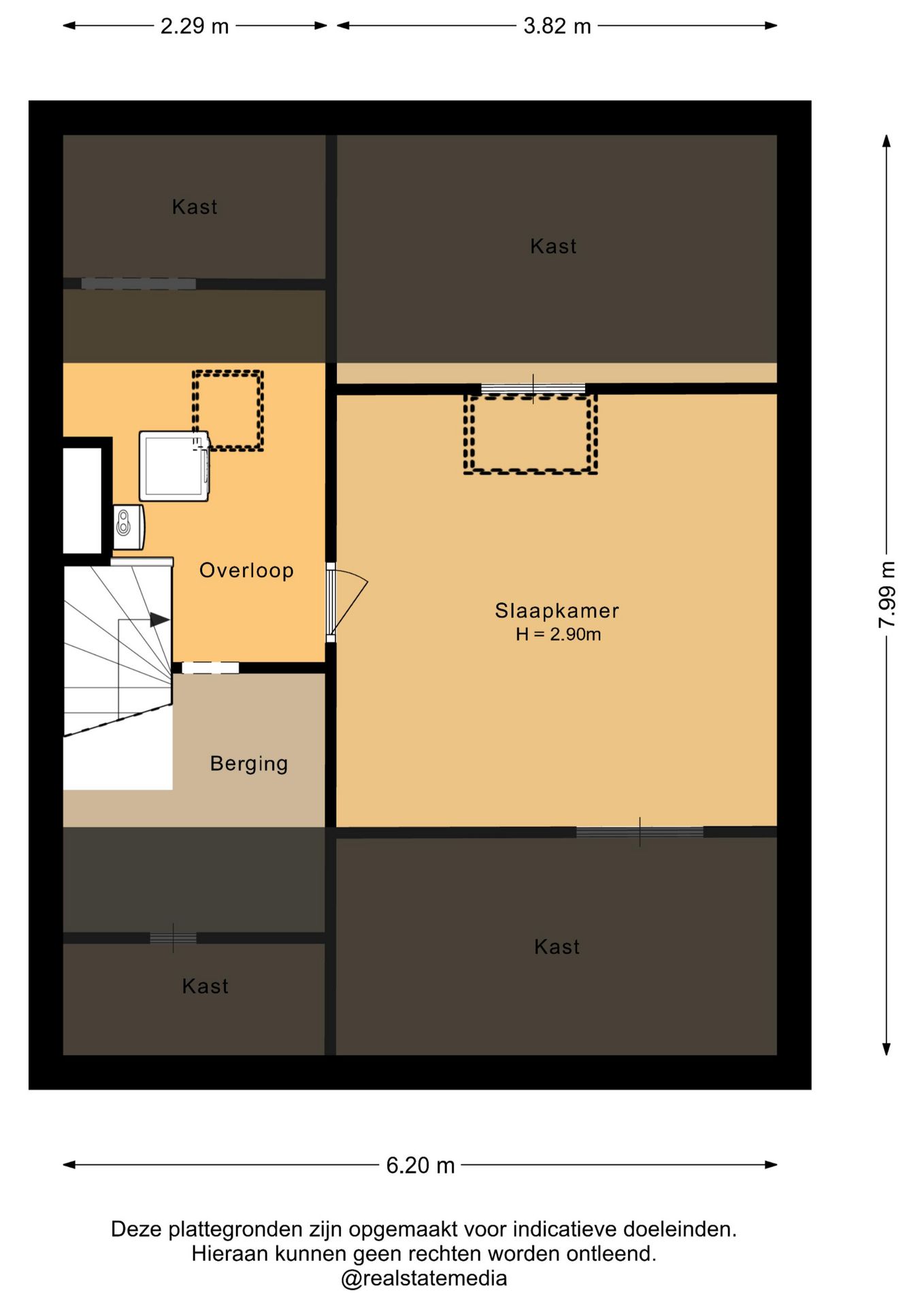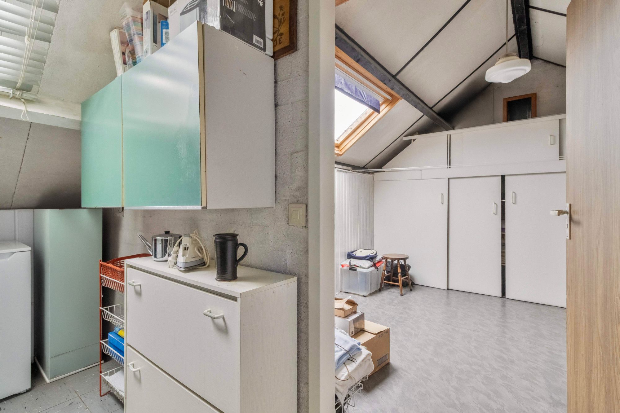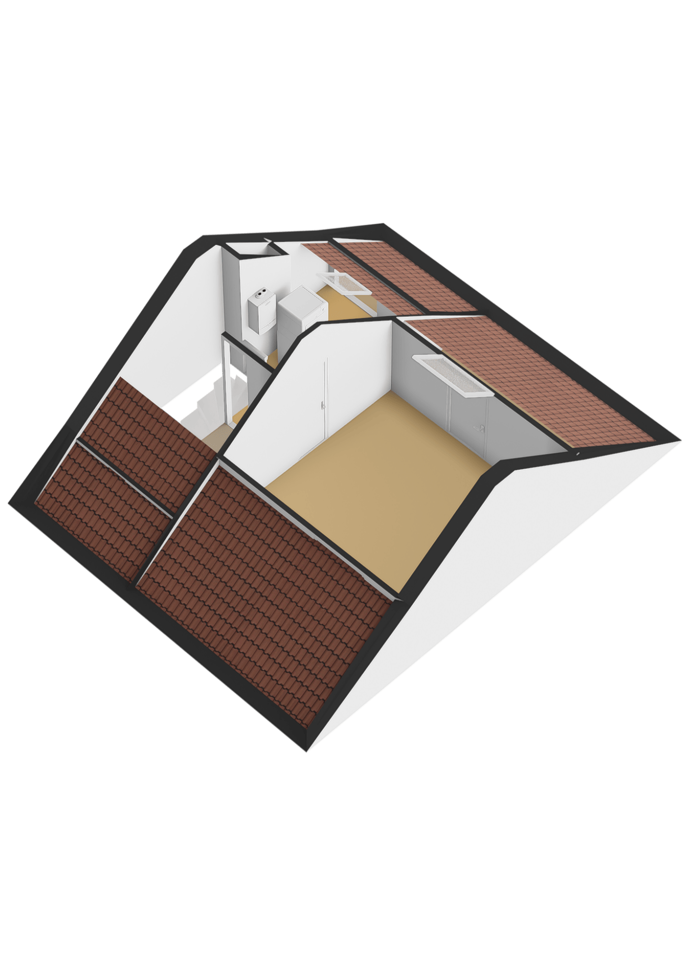 De tweede verdieping is bereikbaar via een vaste trap, heeft een zeilvloer en een dakvenster. Op de overloop bevinden zich de witgoedaansluitingen en de gehuurde cv-ketel (2023). De zolderkamer (ca. 16m2) is voorzien van een Velux raam. De wanden zijn afgewerkt met kunststof schrootjes.