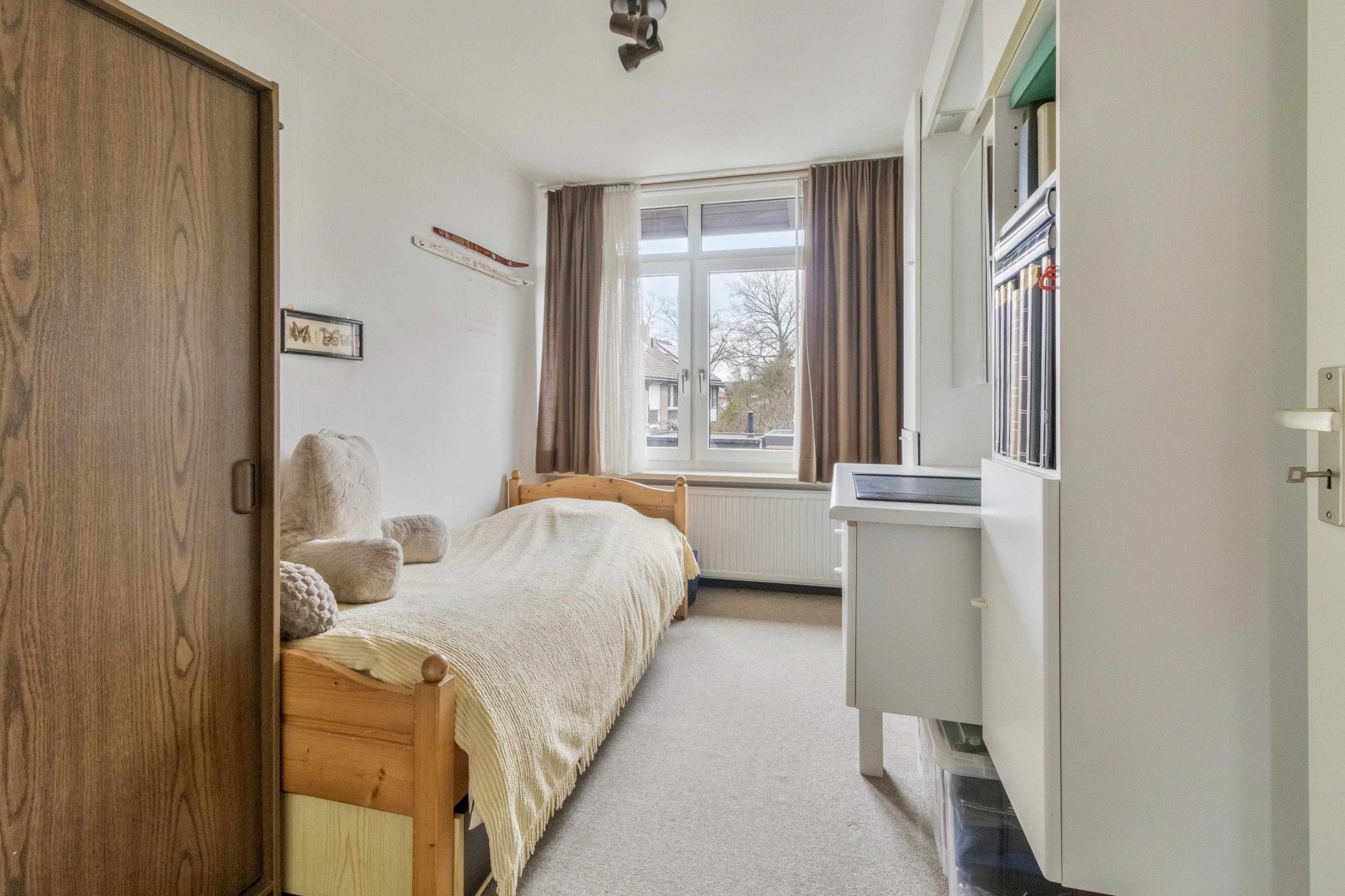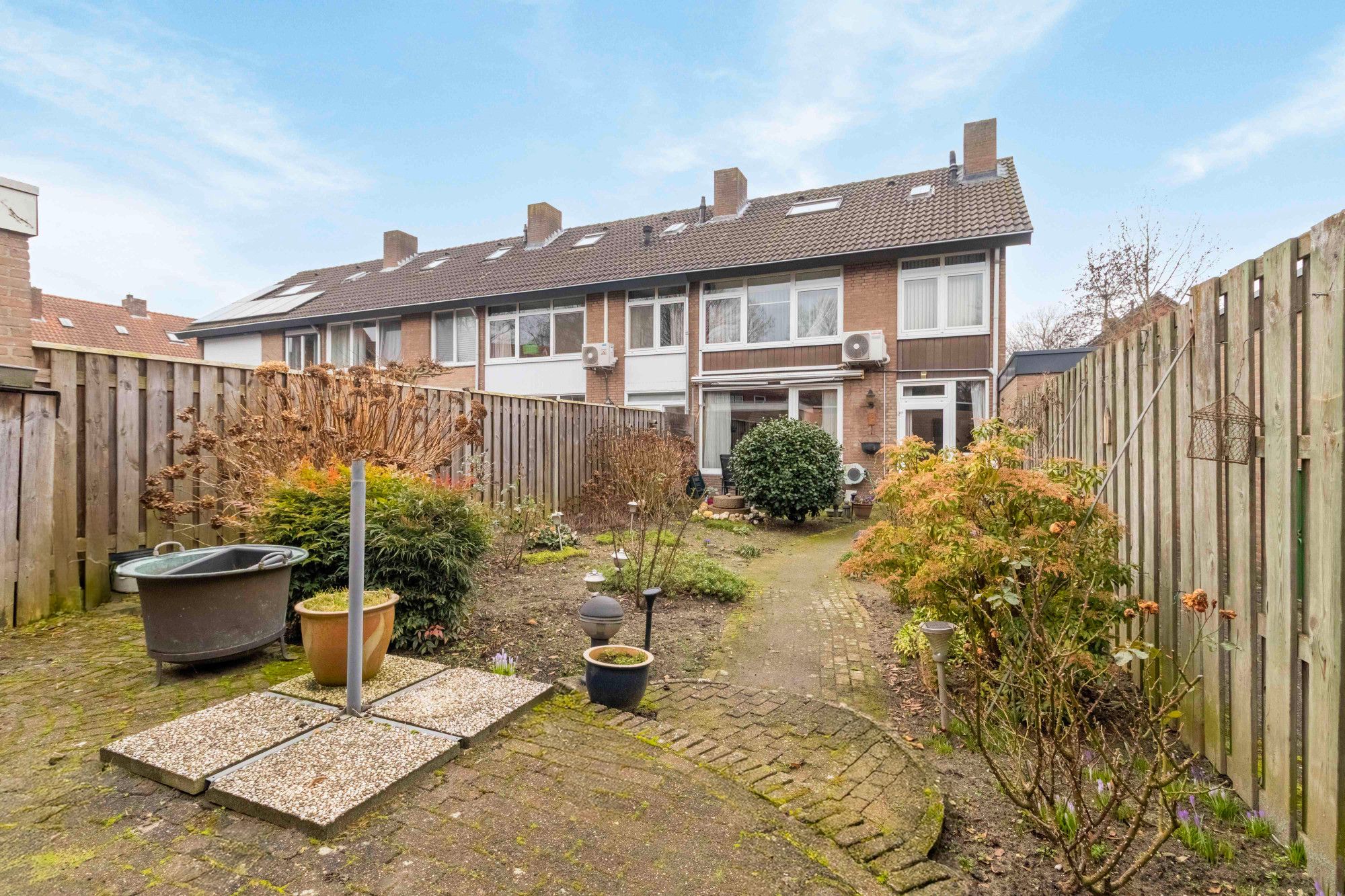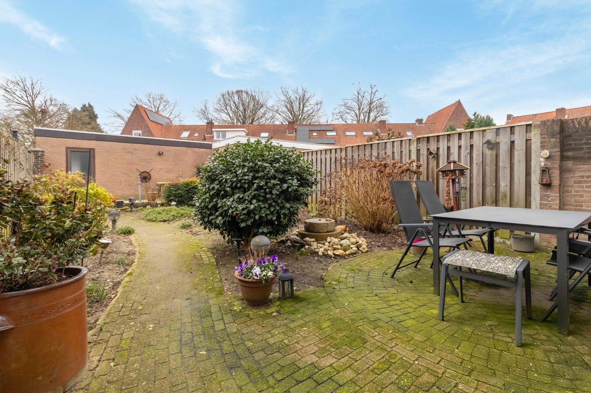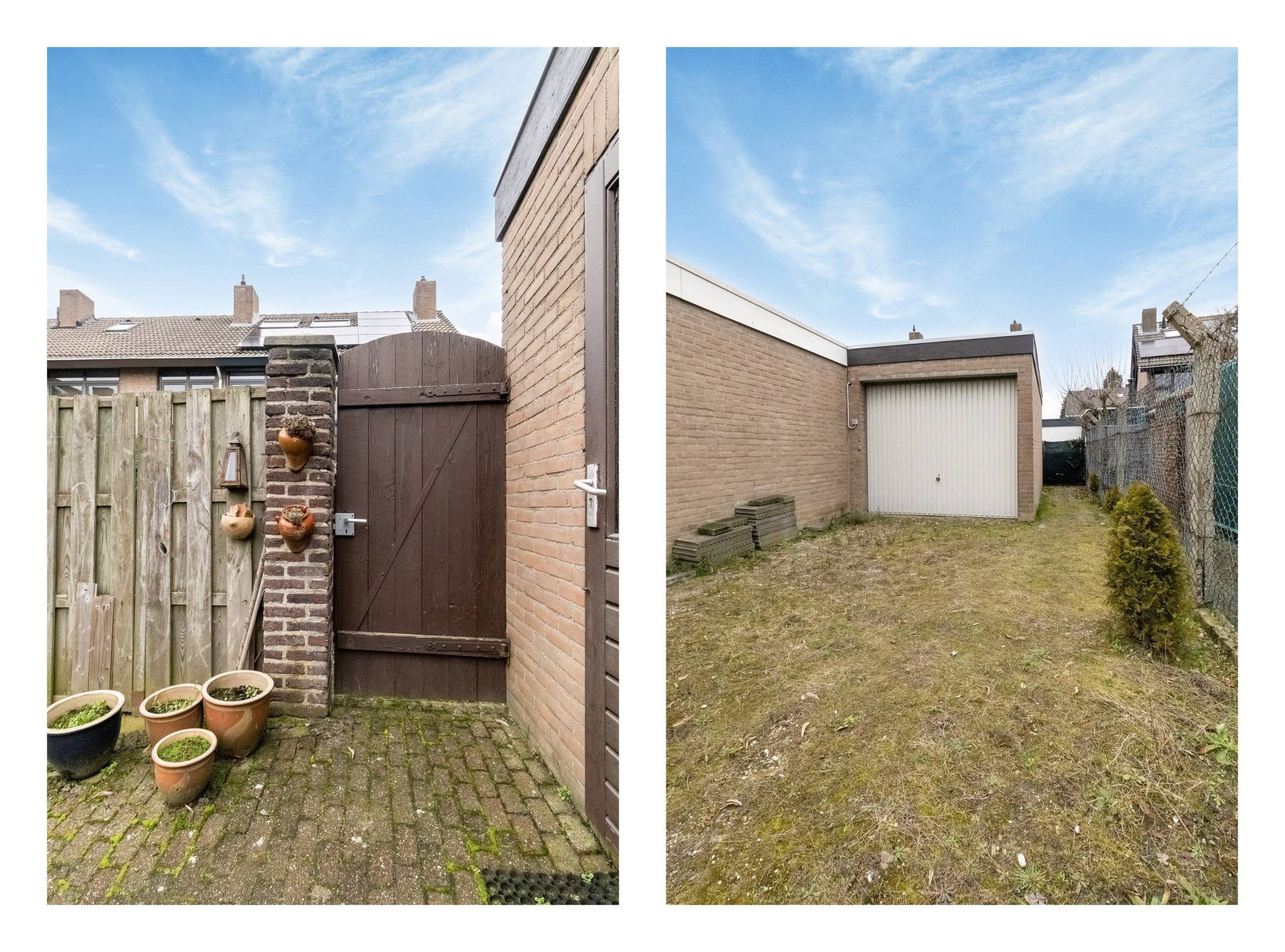 De achtertuin is ruim van opzet en biedt de gehele dag ruimte aan de zon. Aan de achterzijde van de tuin bevindt zich een separate vrije achterom en de garage (ca. 20m2), uitgerust met een elektrische kantelpoort. Voor de garage ligt een gedeelte eigen grond, waardoor parkeren op eigen terrein mogelijk is.