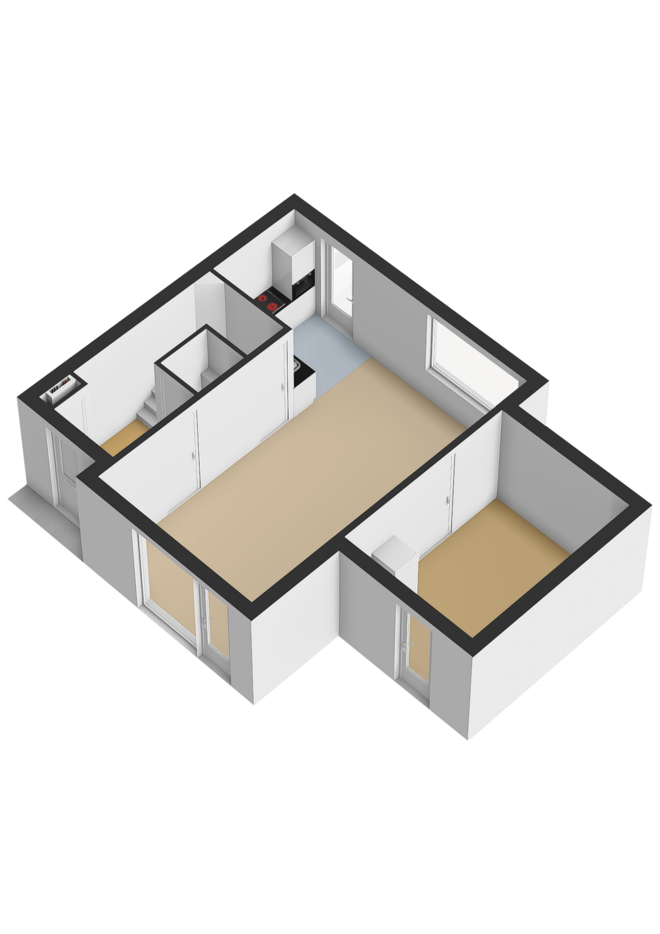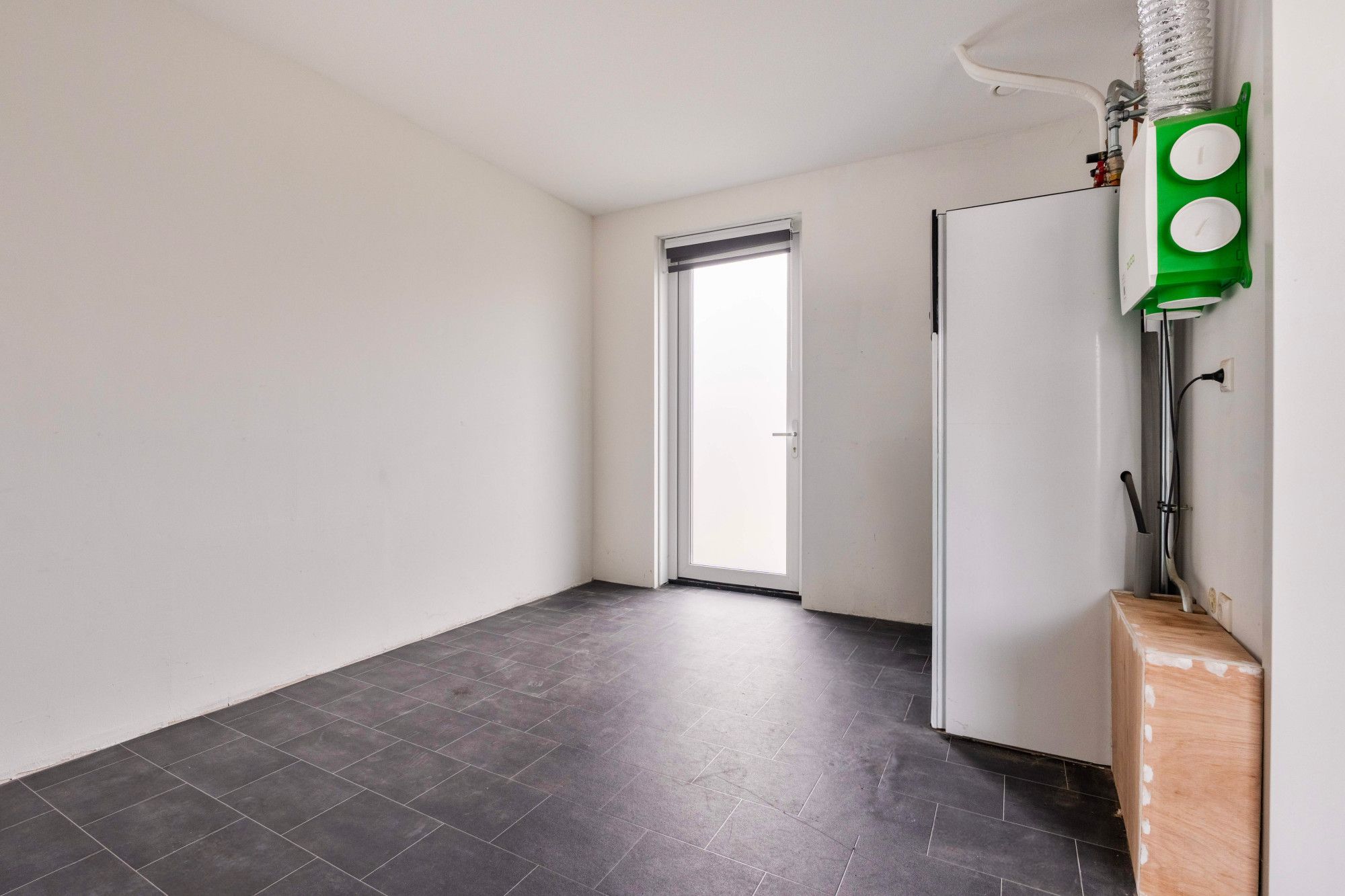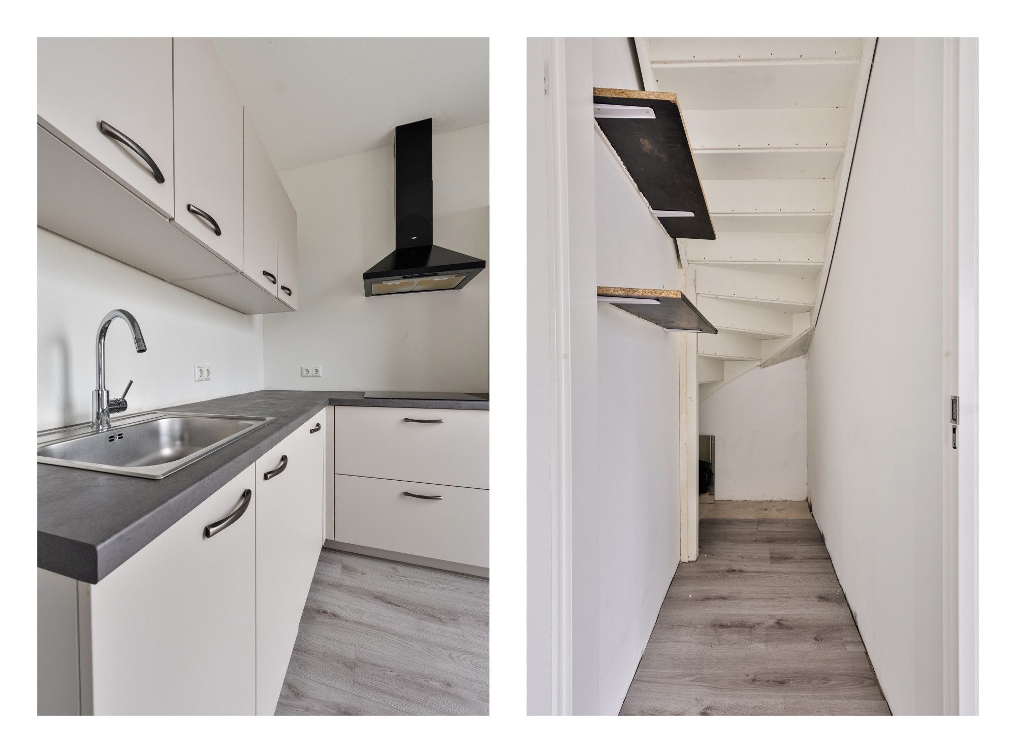 De woning beschikt over een keuken en woonkamer op de begane grond. De open keuken is voorzien van inbouwapparatuur zoals inductiekookplaat, combimagnetron, geïntegreerde koelkast, vaatwasser en recirculatie afzuiging. De woonkamer is voorzien van, zowel aan de voorzijde als achterzijde, grote raampartijen waardoor de woning zeer licht is. Daarbij is nog een berging aanwezig van 13 m² waar zich de witgoedaansluiting, omvormer van de zonnepanelen en de warmtepomp bevinden.