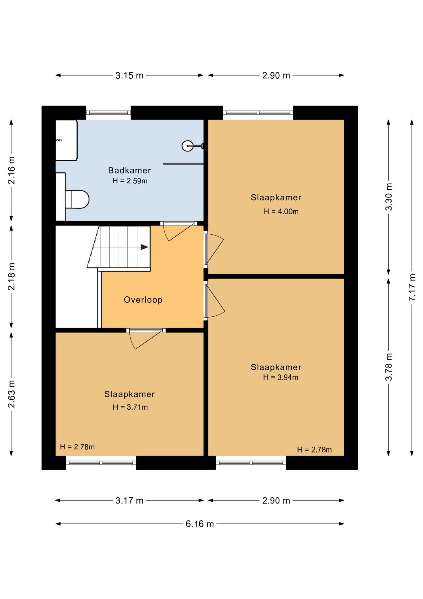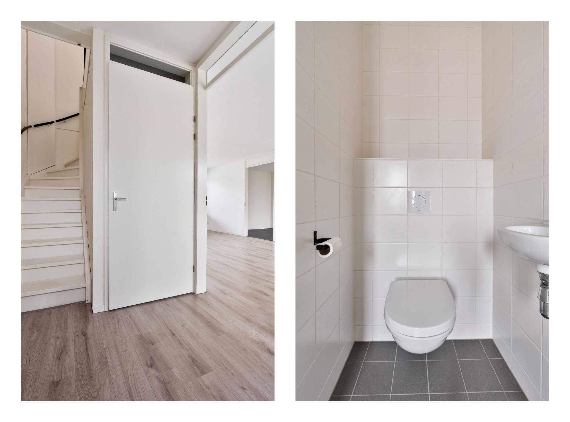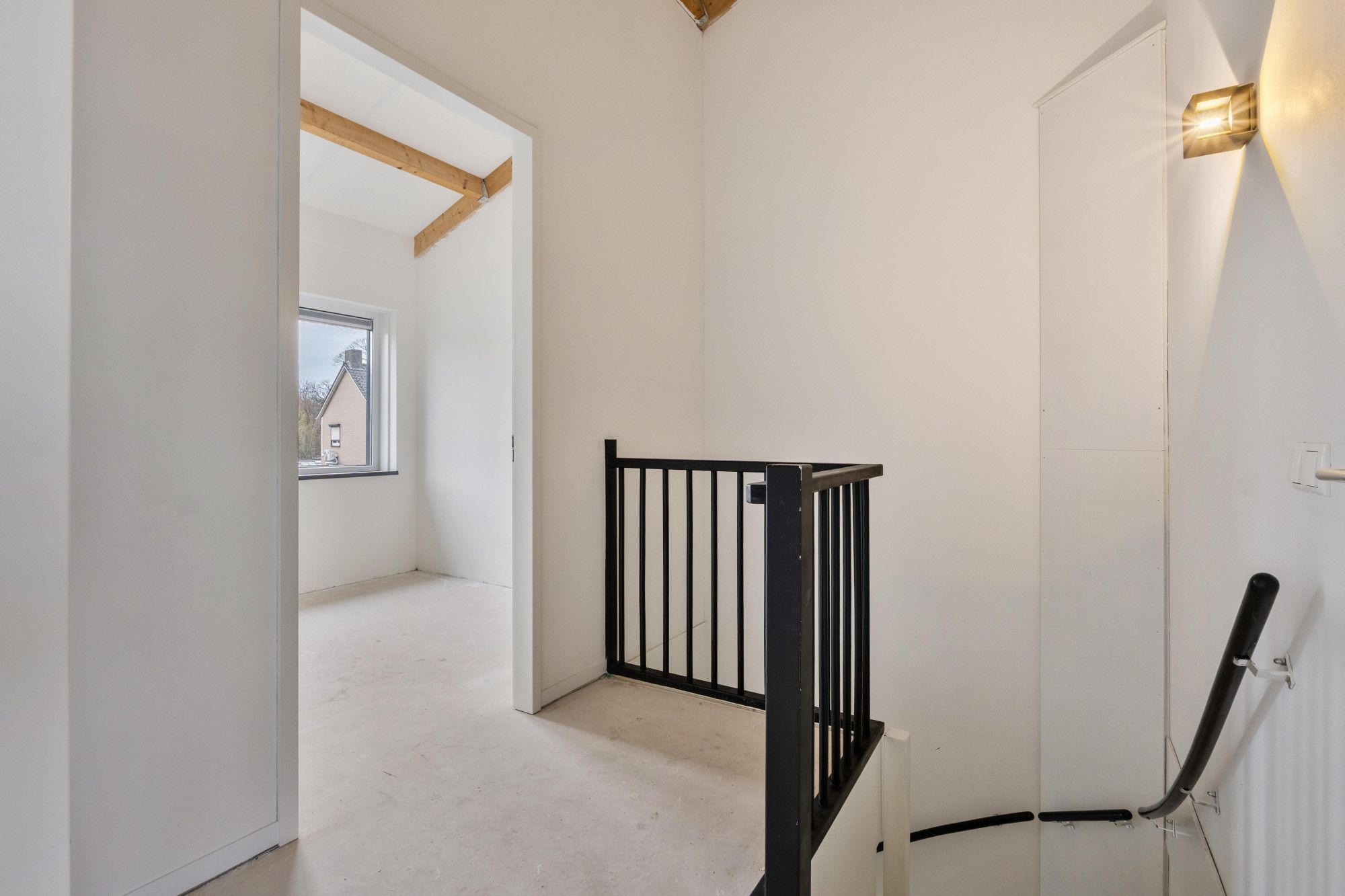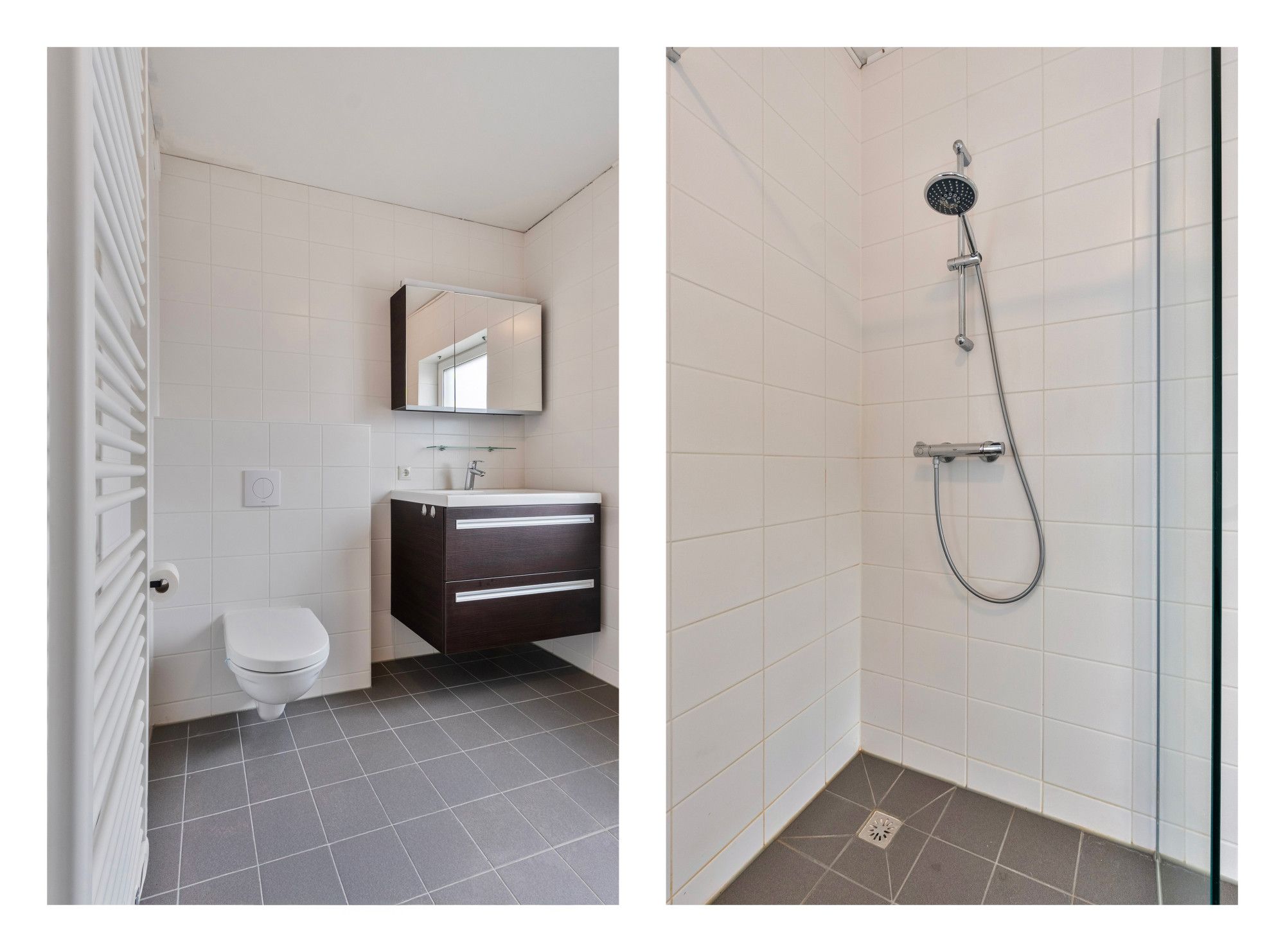 Overloop naar drie slaapkamers van ca. 10 m², 10 m² en 7 m². Daarnaast is er een ruime, volledig betegelde badkamer welke voorzien is van toilet, inloopdouche en wastafel. De plafonds op de eerste etage zijn hoger dan normaal waardoor een heerlijk ruimtelijk gevoel wordt gecreëerd.