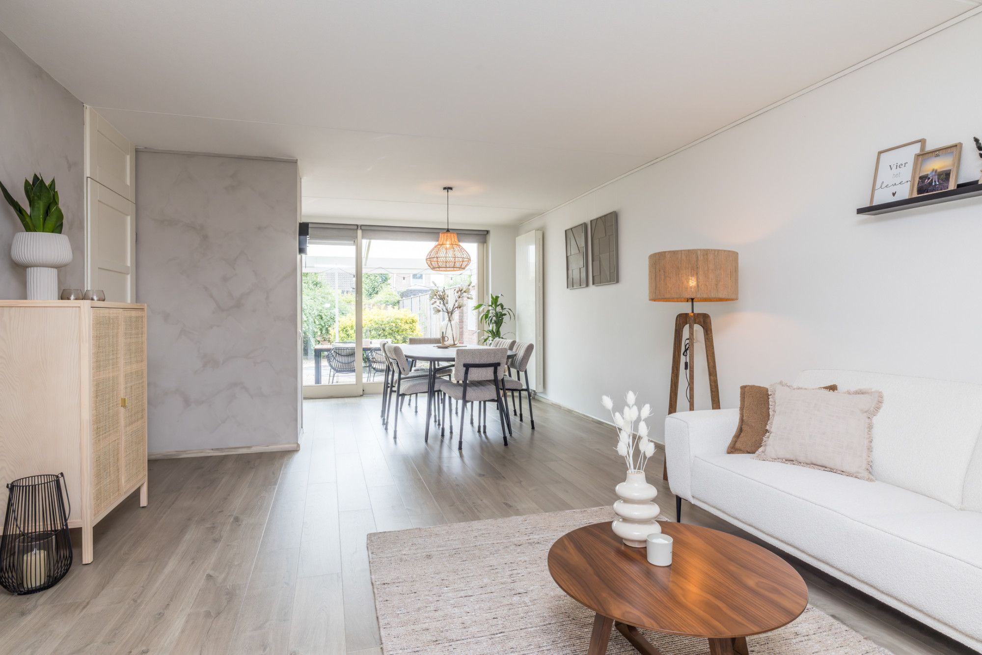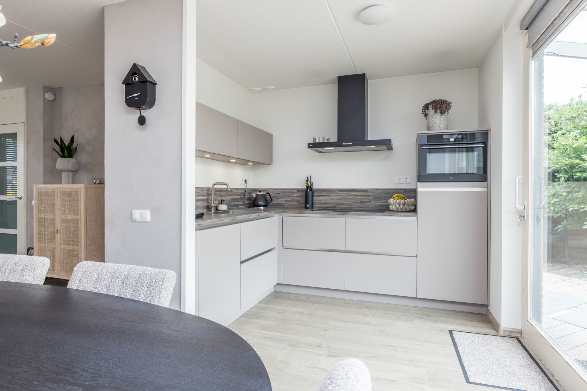 De ruime doorzon woonkamer is voorzien van een fraaie laminaatvloer en geniet dankzij de grote raampartijen van een prettige hoeveelheid daglicht. De half open keuken is modern en smaakvol uitgevoerd in een hoekopstelling en uitgerust met hoogwaardige inbouwapparatuur, waaronder een koelkast, vaatwasser en een inductiekookplaat met krachtige afzuigkap. De woonkamer en keuken zijn gezamenlijk ca. 38 m². Via de ruime schuifpui aan de achterzijde stapt u direct het (zonnige) terras en de verzorgde achtertuin in. De perfecte plek om even te ontspannen (na een werkdag) of gezellig te tafelen.