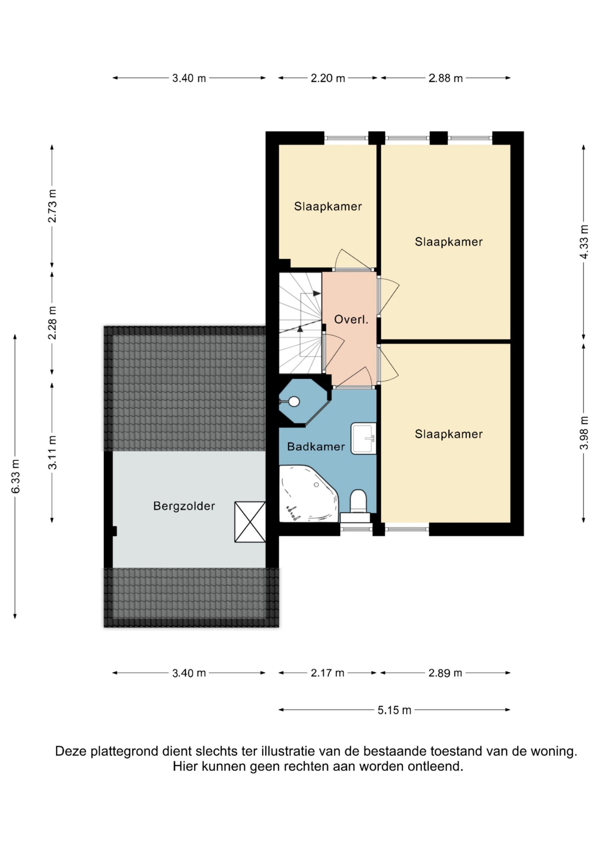 De 1e verdieping van de woning beschikt over een overloop met toegang tot maar liefst 3 slaapkamers en de badkamer. De slaapkamers zijn ca. 12 m², 11 m² en 6 m². De overloop en slaapkamers zijn afgewerkt met een laminaatvloer, wat zorgt voor een warme en uitnodigende sfeer.