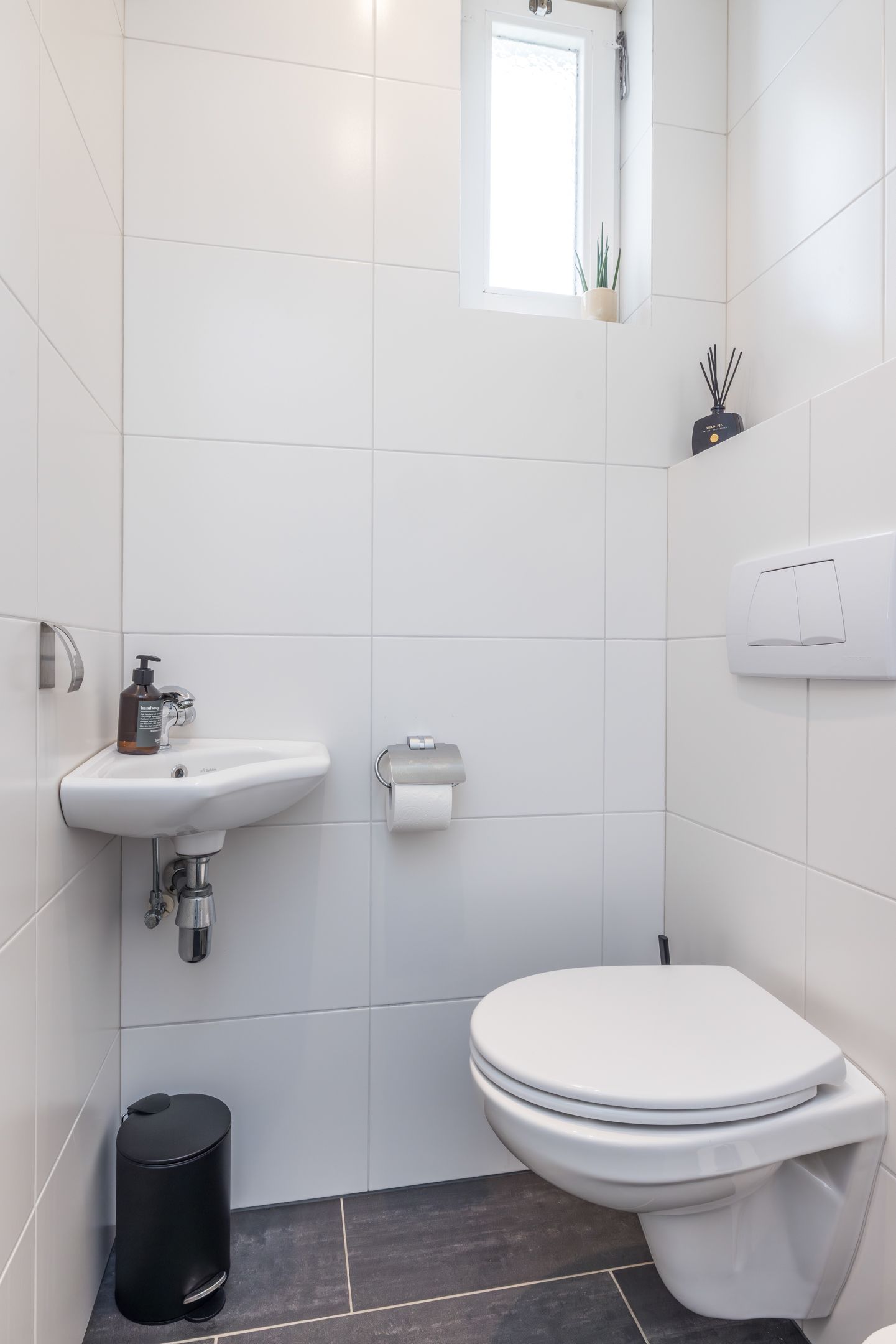 Bij binnenkomst wordt u verwelkomd in een ruime hal met een volledig betegeld toilet, voorzien van een zwevend toilet en een fontein. Vanuit de hal heeft u eveneens directe toegang tot de sfeervolle woonkamer, de garage en de 1e verdieping.