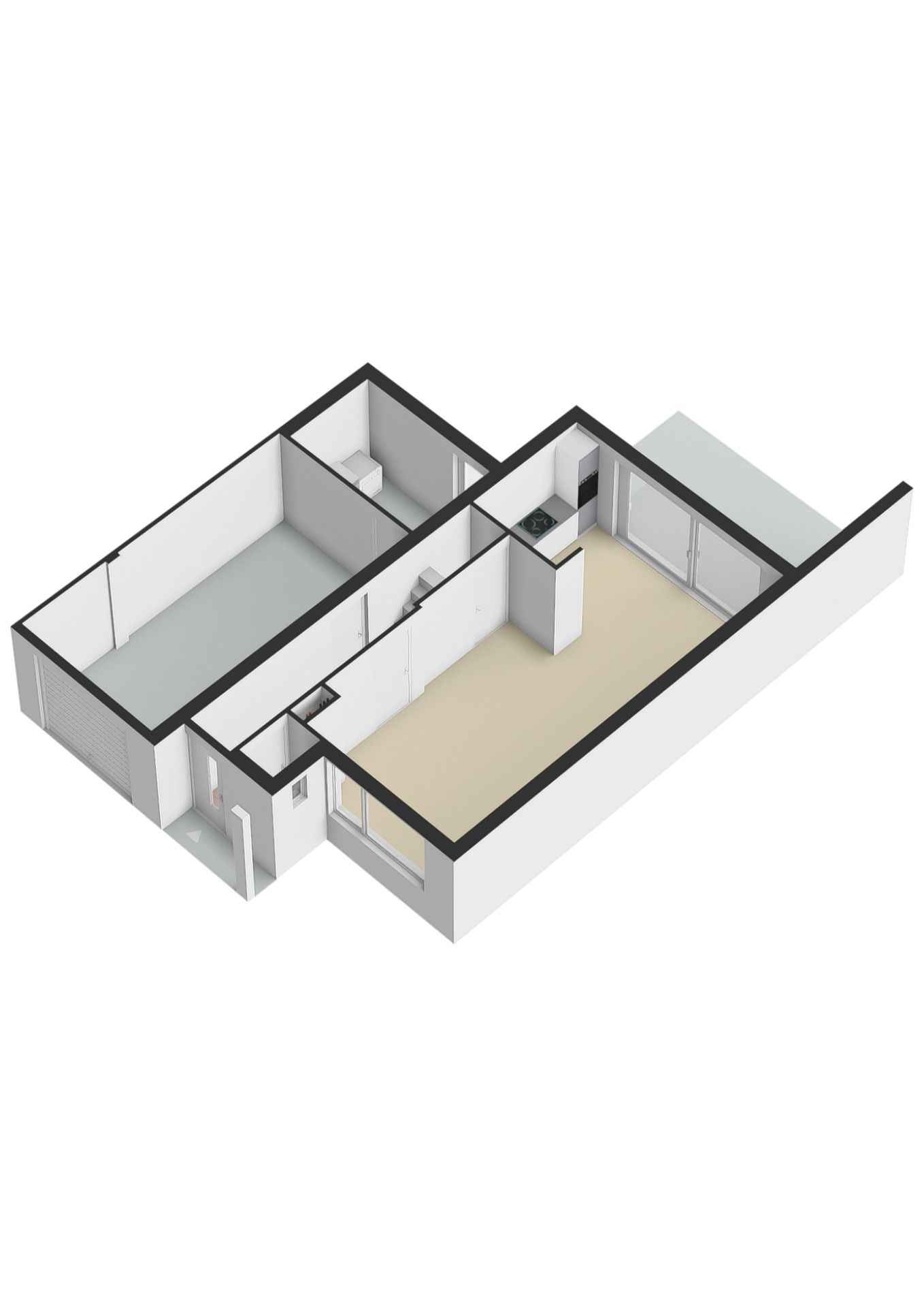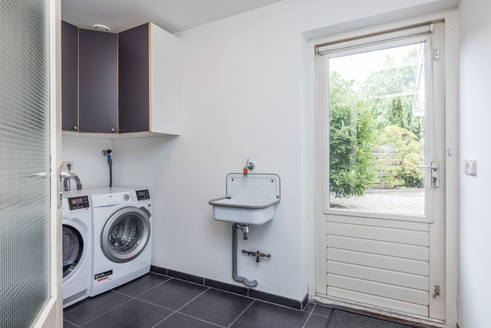 Vanuit de entree/hal is de naastgelegen garage (ca. 21 m²) inpandig bereikbaar. De garage is voorzien van een ruime vliering, ideaal voor extra opbergruimte. Aan de achterzijde van de garage is de bijkeuken (ca. 6 m²) gerealiseerd, alwaar de witgoedaansluitingen zich bevinden. Vanuit de bijkeuken is de achtertuin bereikbaar.