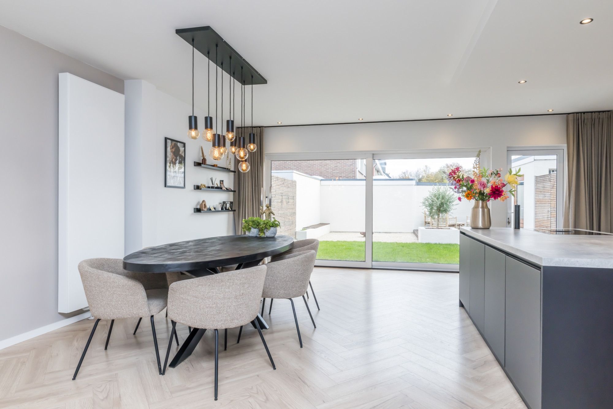 - Lichte woonkamer met aanbouw en open keuken beiden uit (2020)