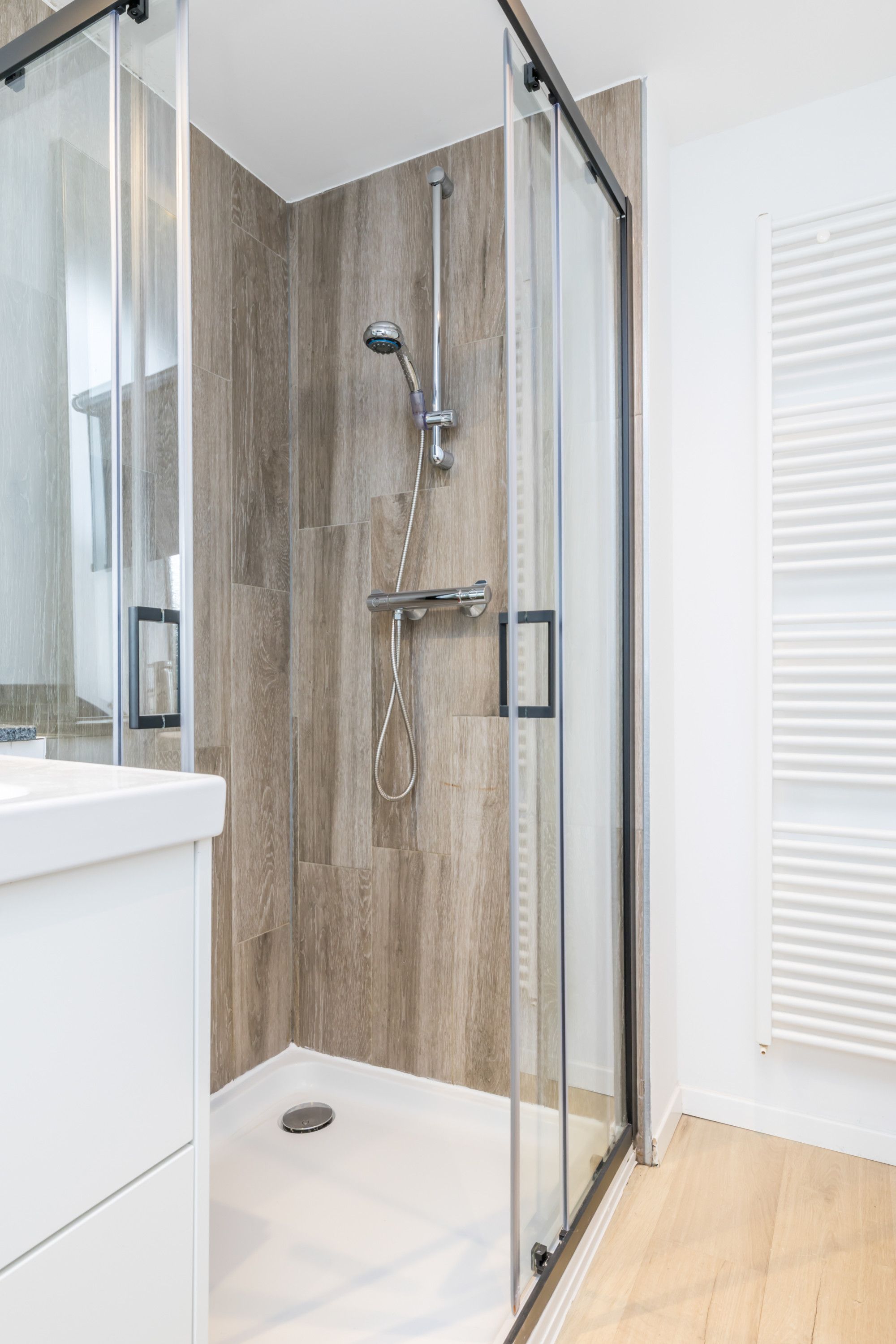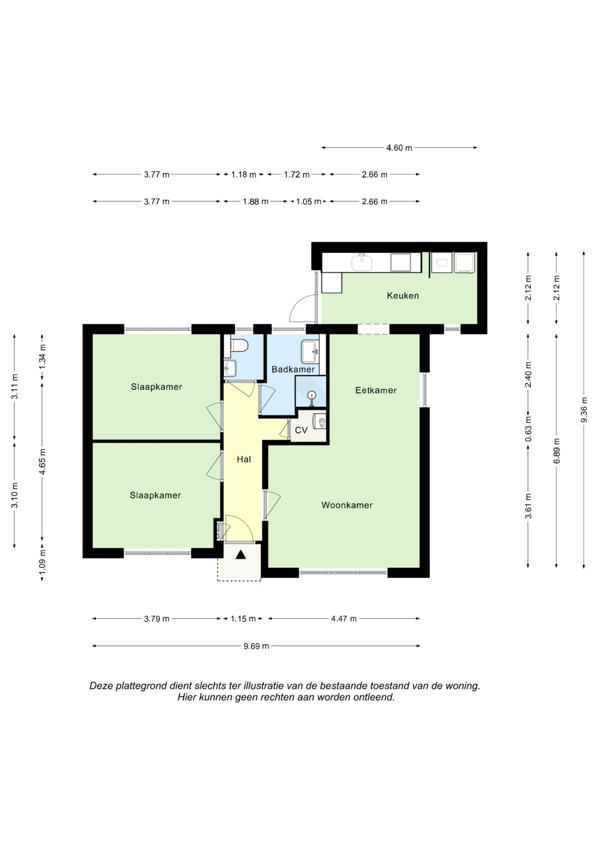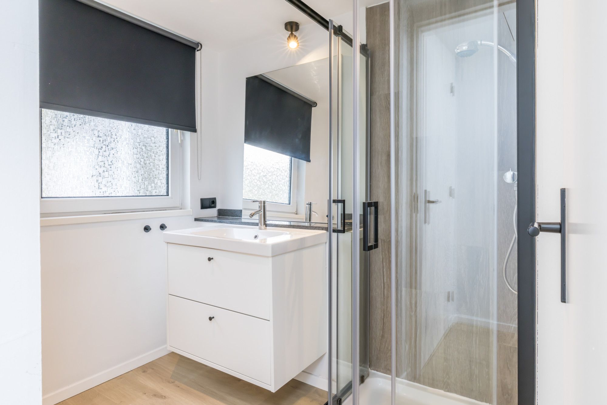 Moderne badkamer (2,40 m x 1,72 m) is v.v. een douche en vaste wastafel met badmeubel. Slaapkamer I (3,79 m x 3,10 m) & slaapkamer II (3,77 m x 3,11 m) zijn beide v.v. een laminaatvloer en op slaapkamer II bevindt zich de airco.