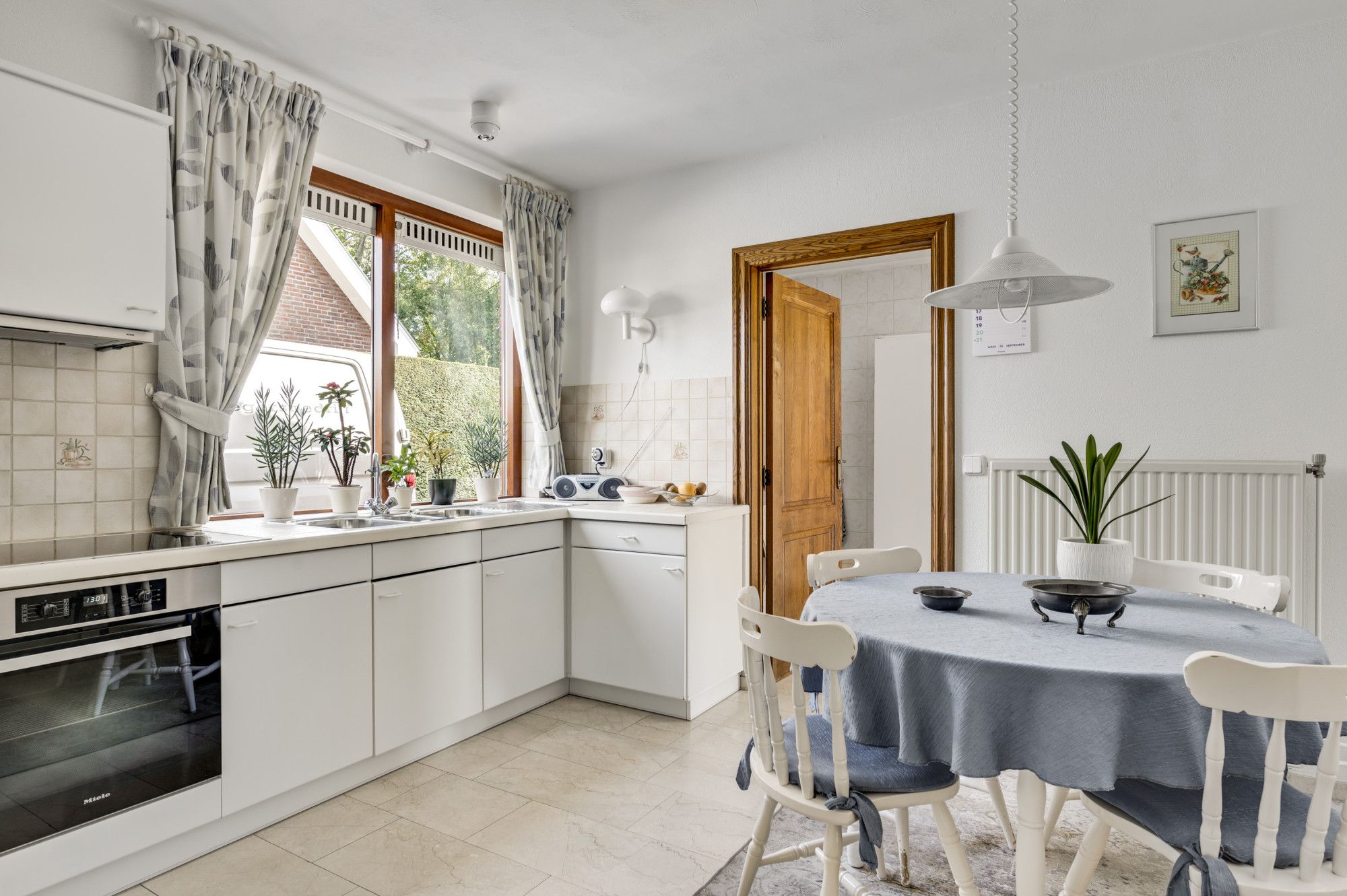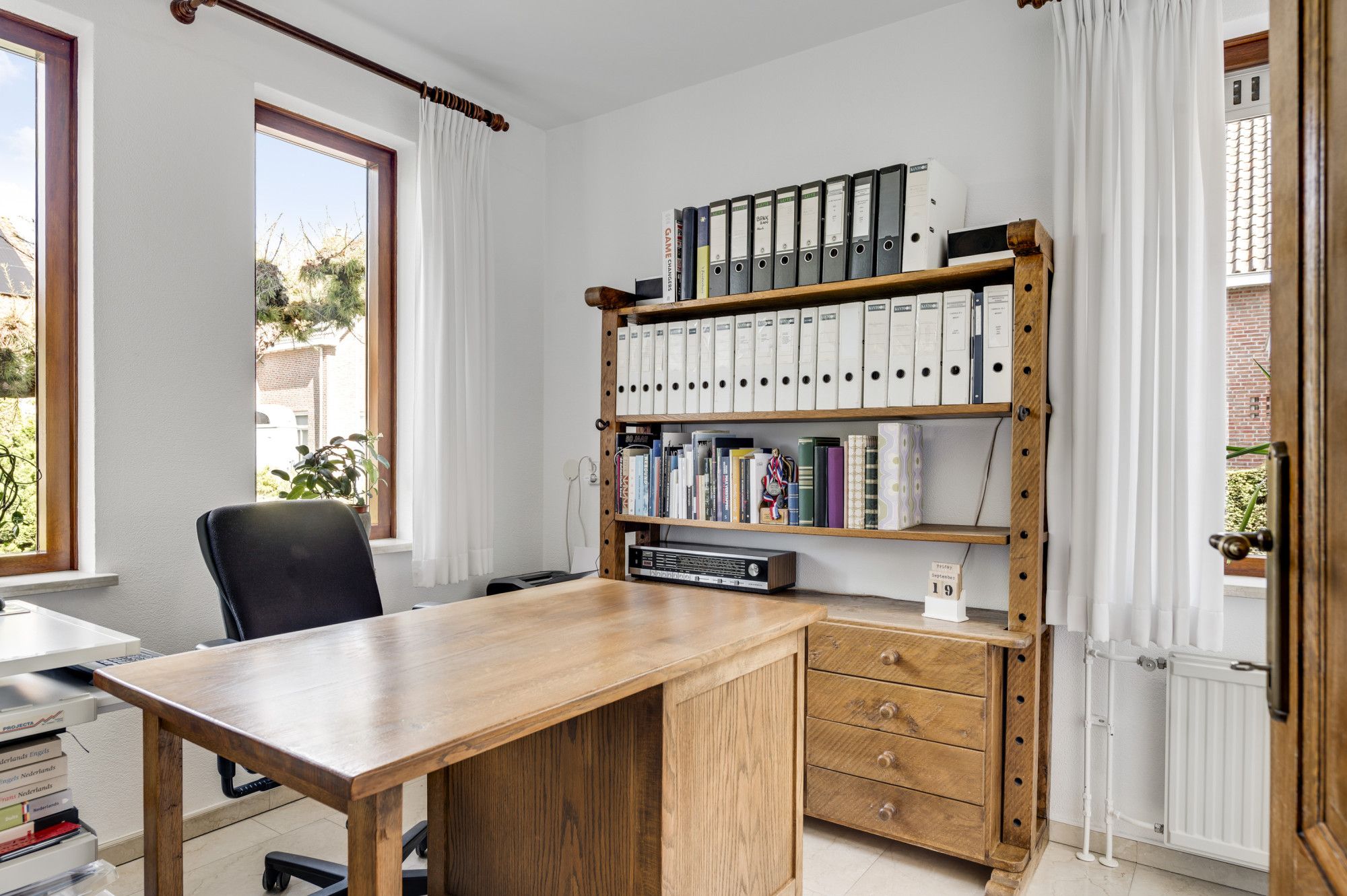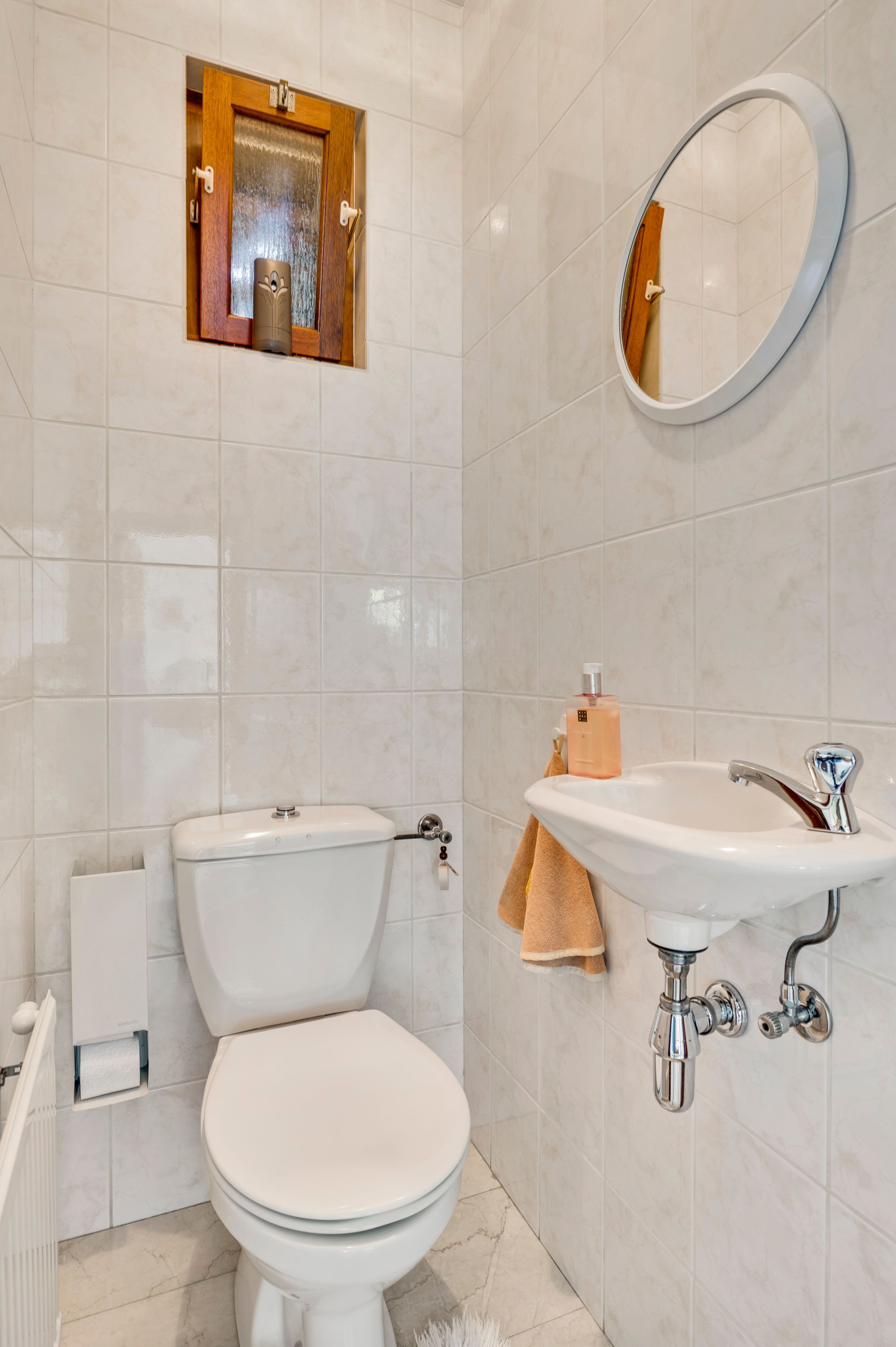 De overdekte entree ligt aan een uitnodigende lichte hal met fraaie trappartij, meterkast en toiletruimte met wc en fonteintje. De hal geeft toegang tot de woonkamer, keuken en een aparte multifunctionele extra kamer (nu in gebruik als thuiskantoor). De ruime woonkamer biedt veel daglicht en aangrenzend is de woonkeuken gelegen met een combinatie in een L-opstelling met inbouwapparatuur (elektrische kookplaat, afzuigkap, koelkast, vriezer en een oven). Naast de keuken is de praktische bijkeuken gesitueerd met de witgoedaansluitingen. Via de bijkeuken is de fraaie tuinkamer bereikbaar; echt een verlengstuk van de woonkamer. Je hebt hier heerlijk tuincontact door de grote schuifpui en zijn er tevens elektrische screens aanwezig. Ook is er een loopdeur naar de tuin.