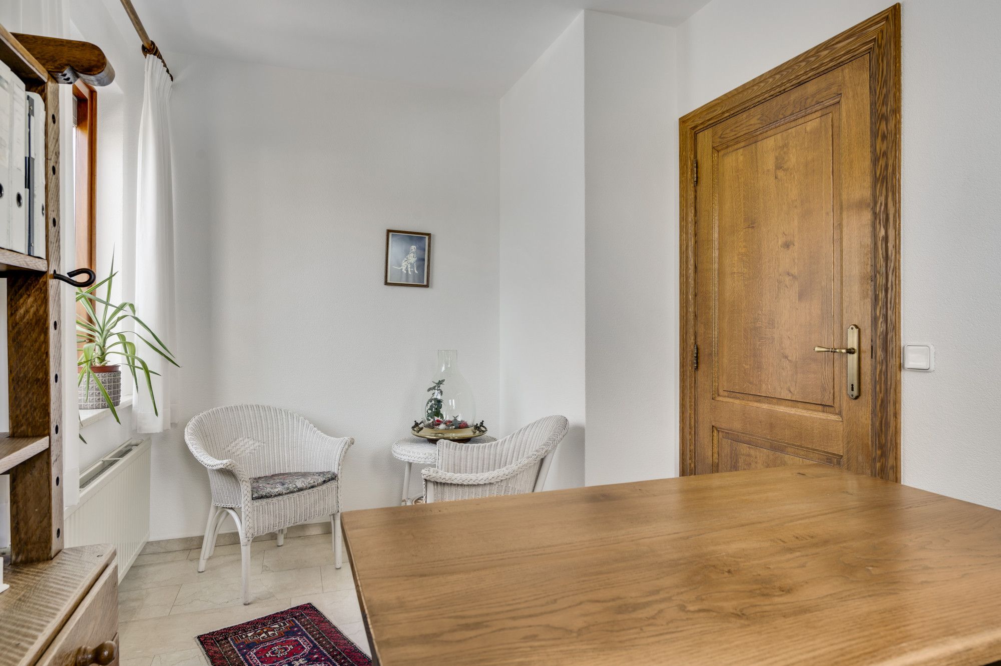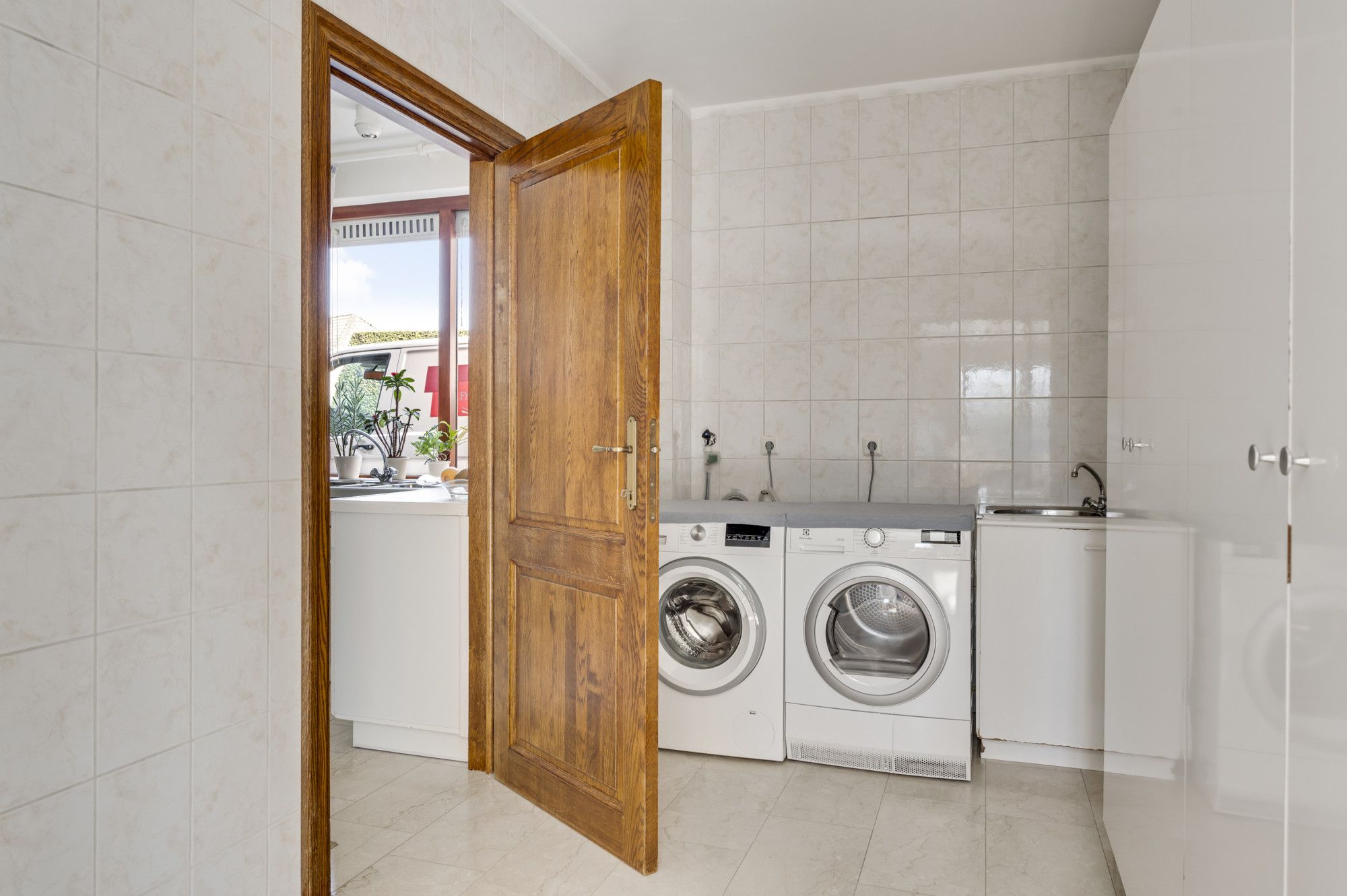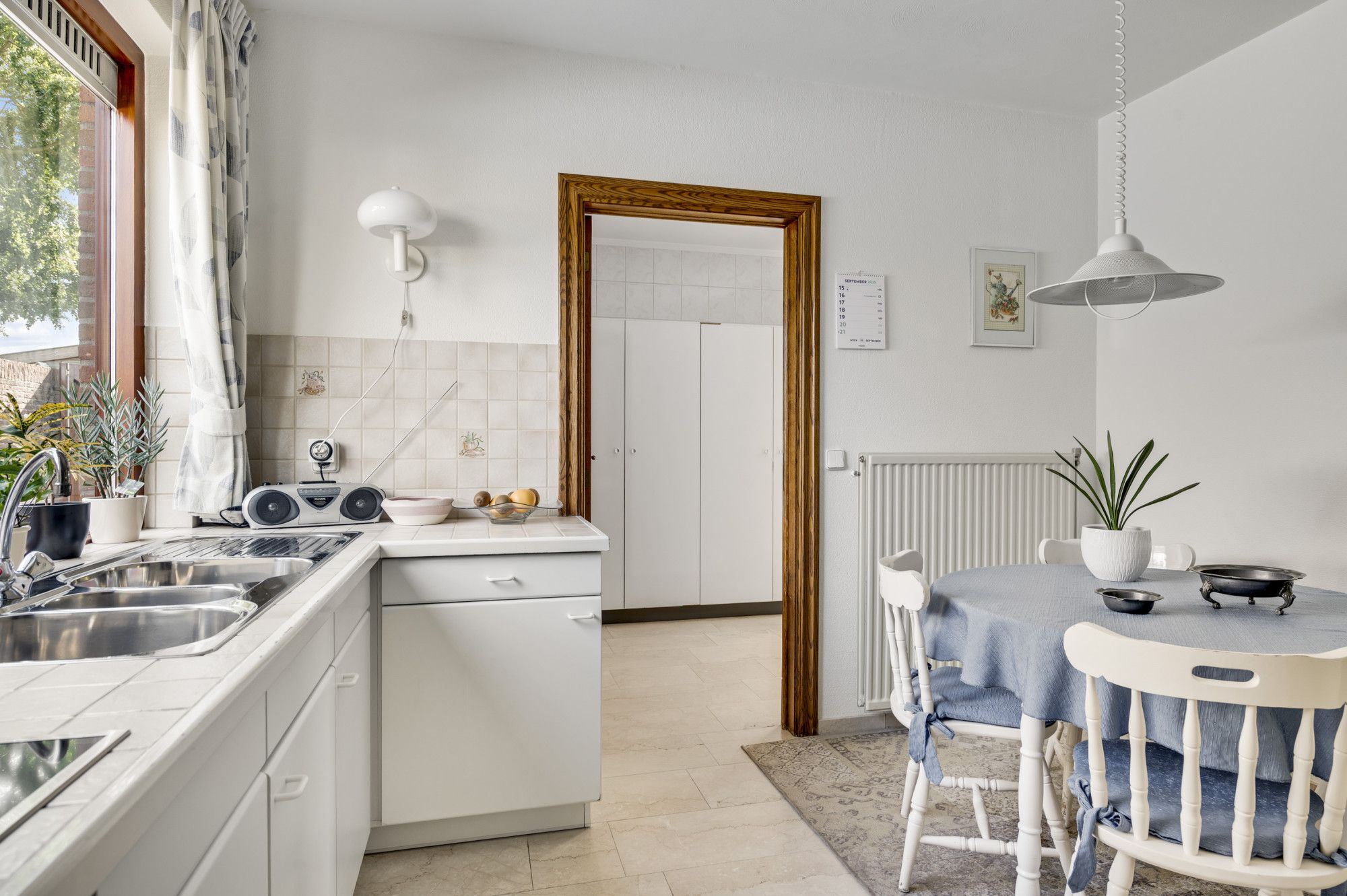 De overdekte entree ligt aan een uitnodigende lichte hal met fraaie trappartij, meterkast en toiletruimte met wc en fonteintje. De hal geeft toegang tot de woonkamer, keuken en een aparte multifunctionele extra kamer (nu in gebruik als thuiskantoor). De ruime woonkamer biedt veel daglicht en aangrenzend is de woonkeuken gelegen met een combinatie in een L-opstelling met inbouwapparatuur (elektrische kookplaat, afzuigkap, koelkast, vriezer en een oven). Naast de keuken is de praktische bijkeuken gesitueerd met de witgoedaansluitingen. Via de bijkeuken is de fraaie tuinkamer bereikbaar; echt een verlengstuk van de woonkamer. Je hebt hier heerlijk tuincontact door de grote schuifpui en zijn er tevens elektrische screens aanwezig. Ook is er een loopdeur naar de tuin.