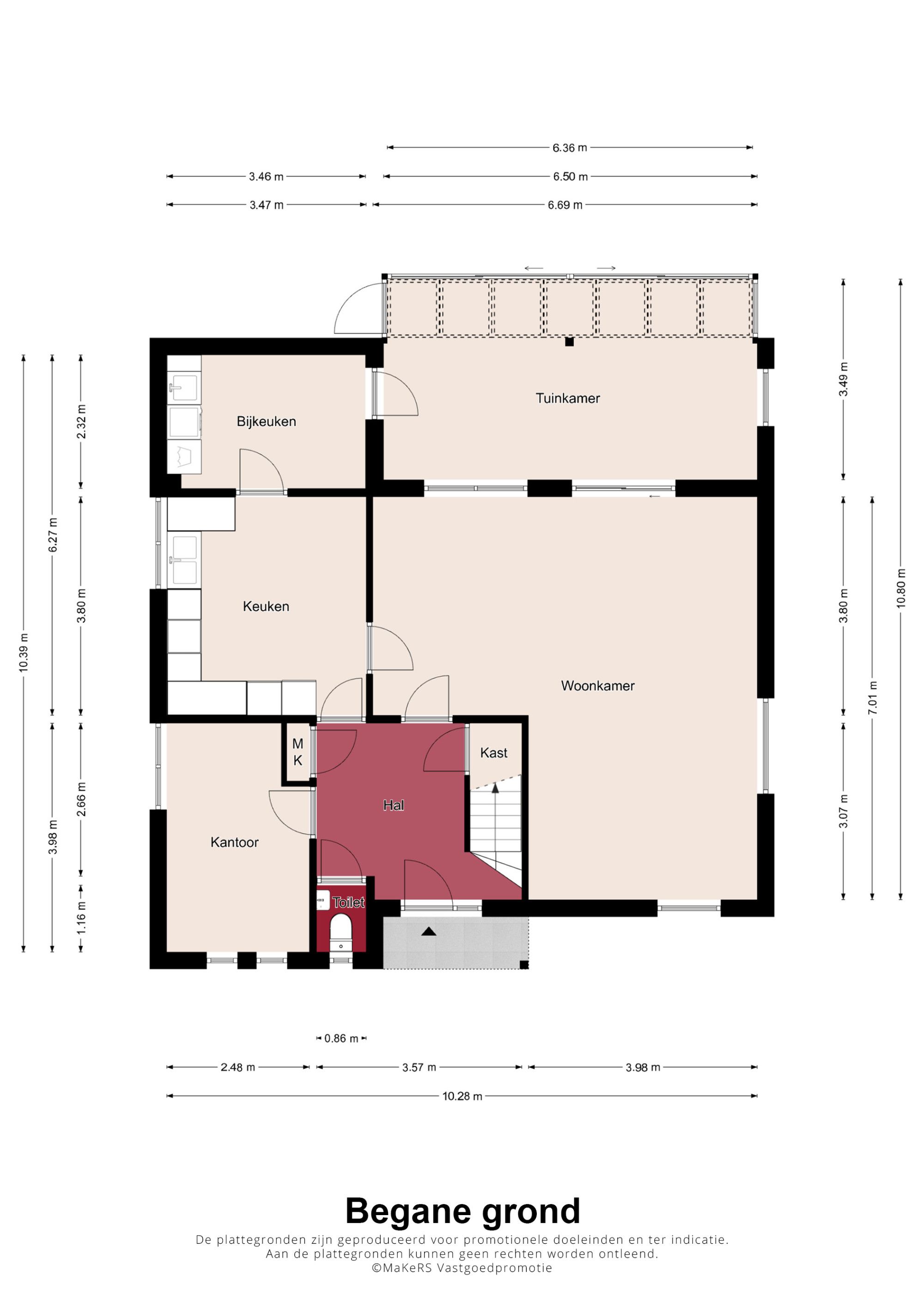 Begane grond (voorzien van een fraaie tegelvloer, deels voorzien van vloerverwarming):
