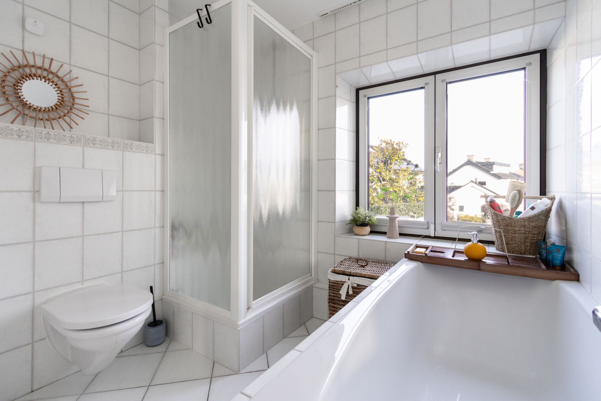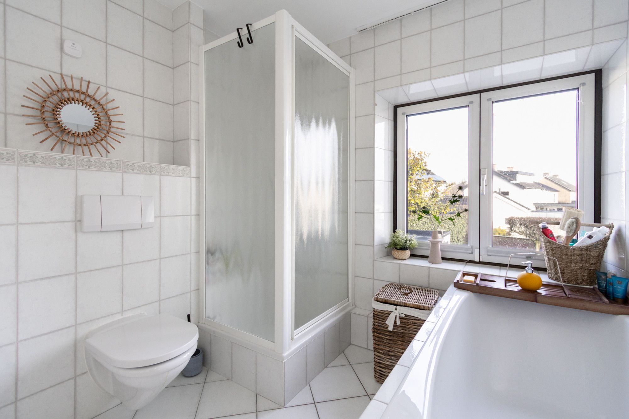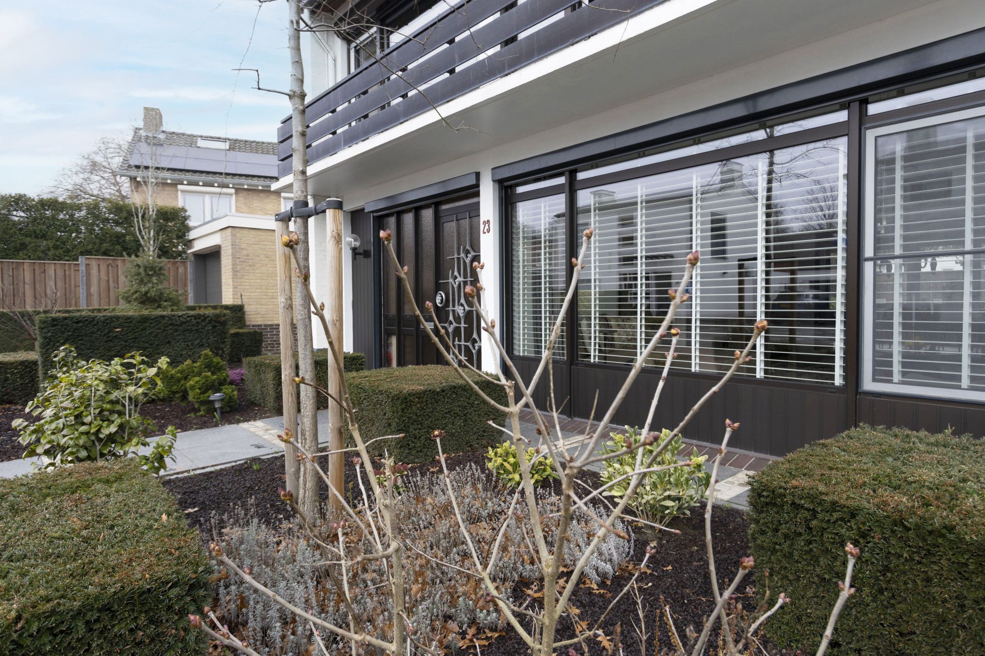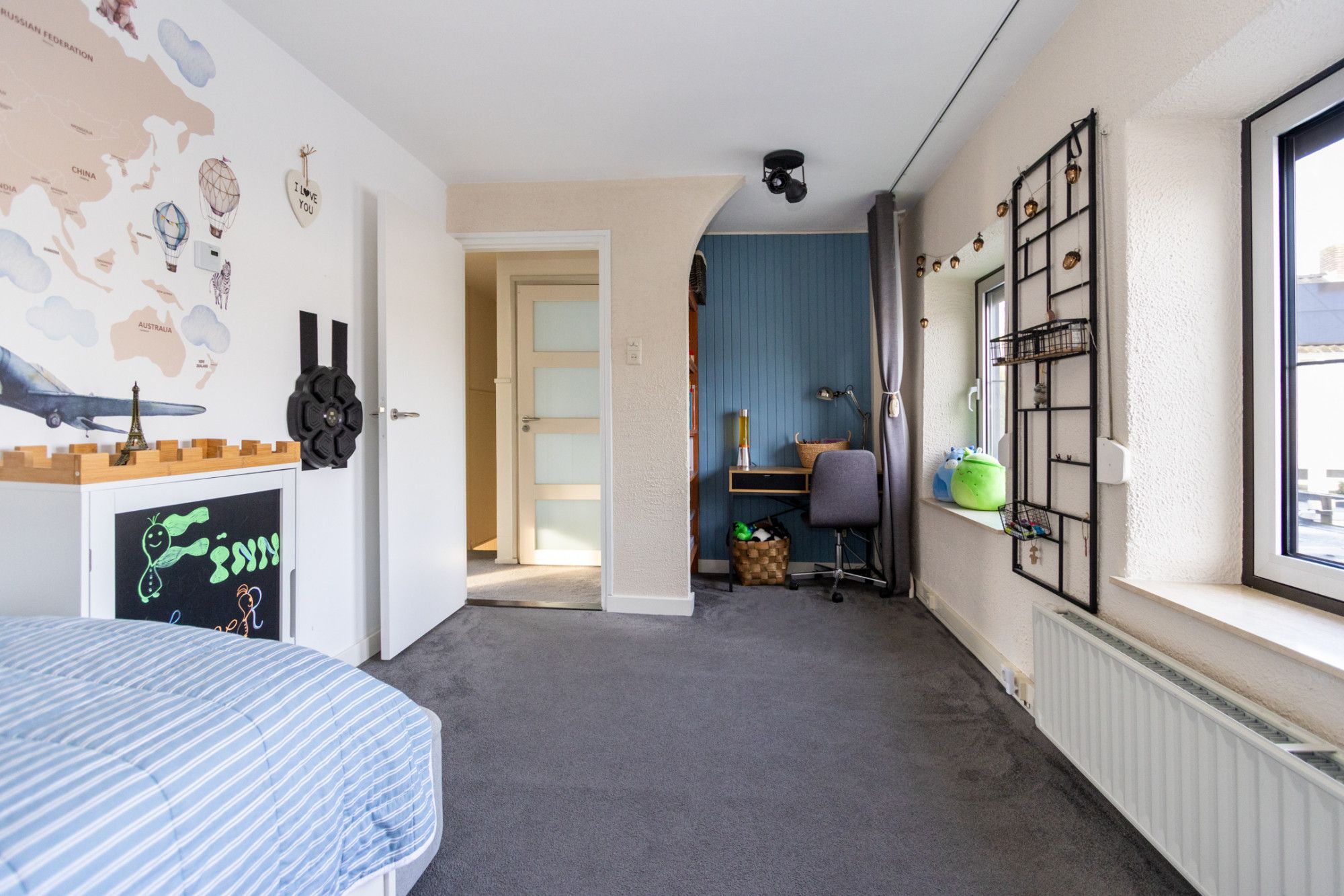 Op de eerste verdieping bevinden zich drie slaapkamers, alle voorzien van vloerbedekking, aluminium kozijnen met HR++ glas, airconditioning en rolluiken. De tweede badkamer is compleet uitgerust met een douche, brede wastafel met meubel en spiegelkast, ligbad en wandcloset. Via een vlizotrap bereik je de bergzolder, waarvan de vloer in 2023 geïsoleerd is. Een ruimte die zich uitstekend leent voor extra opslag.