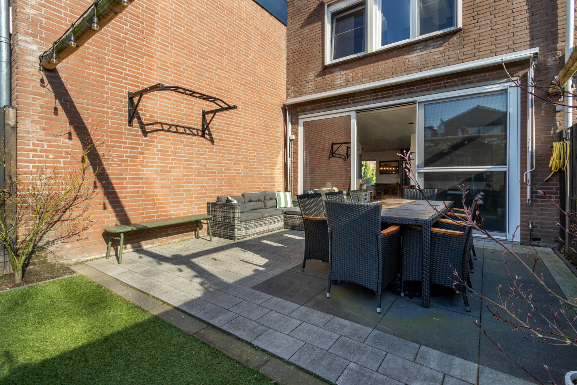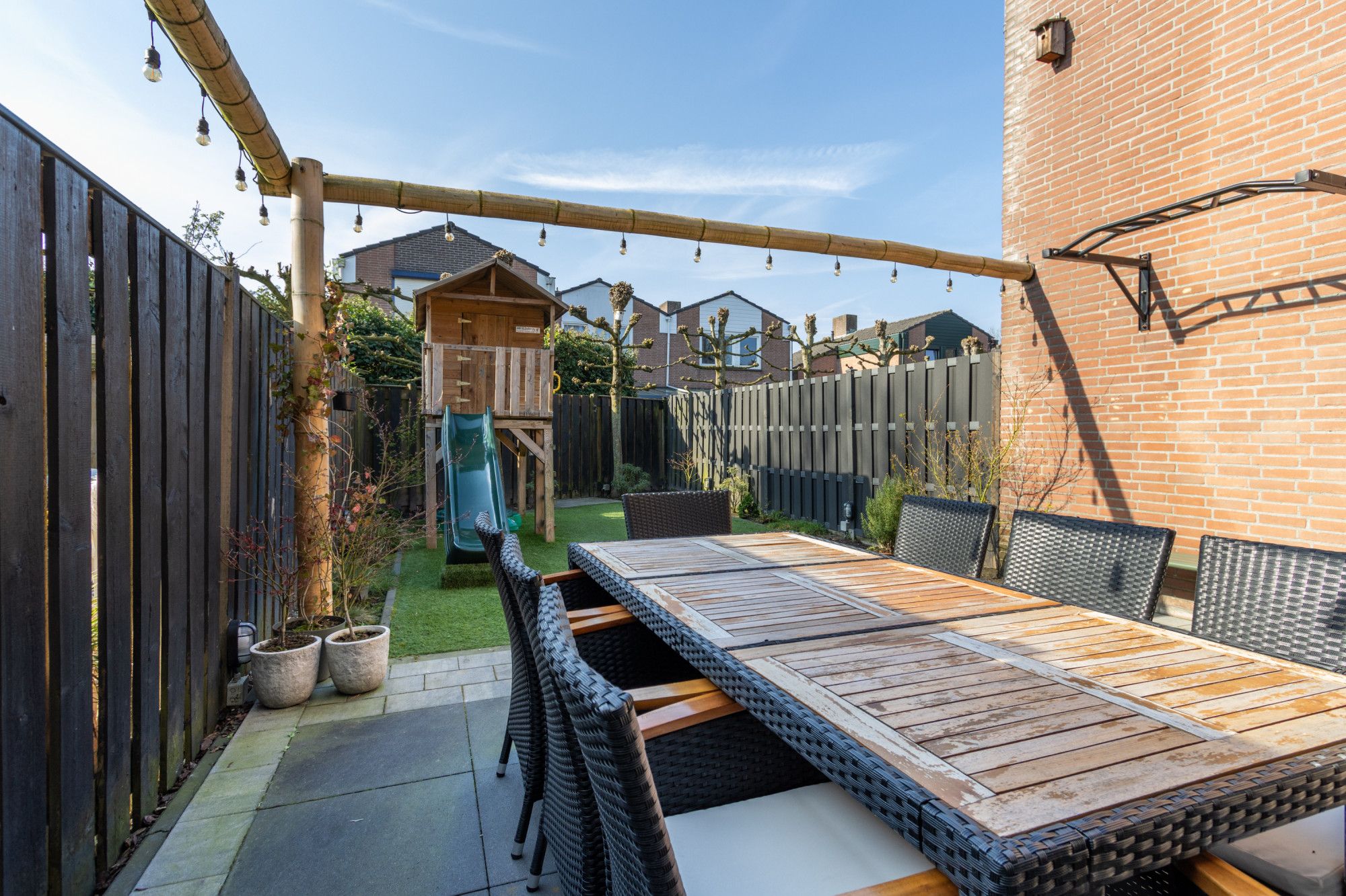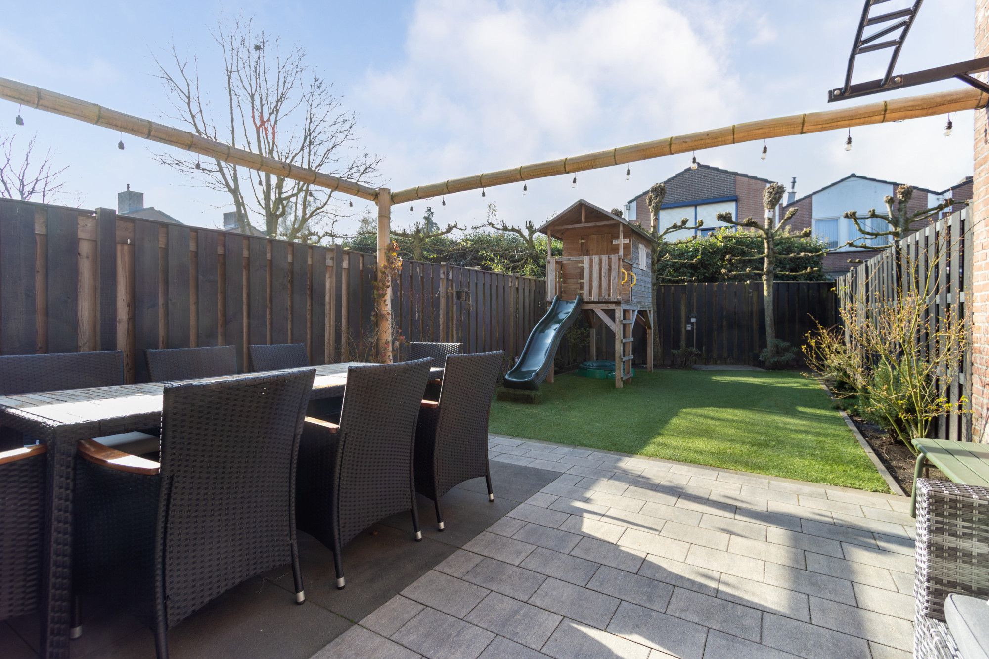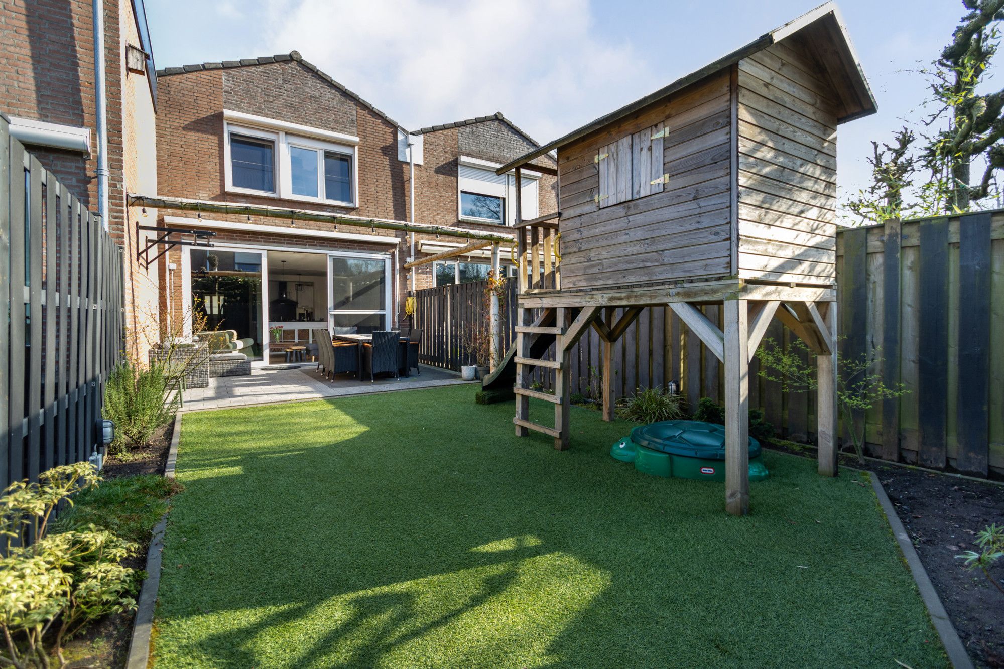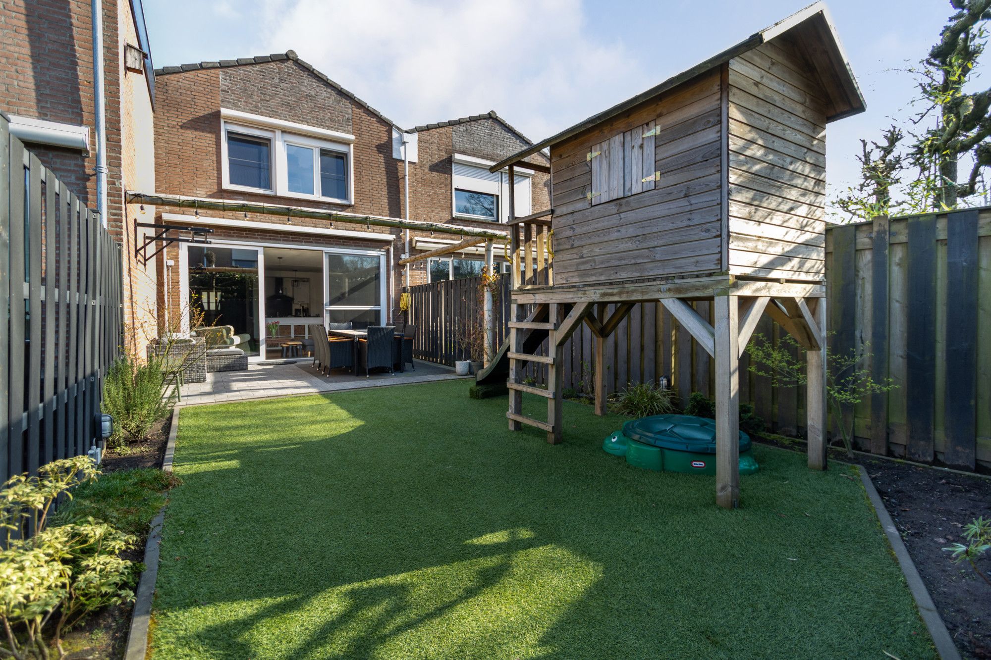 De vernieuwde achtertuin (2022) is onderhoudsvriendelijk aangelegd met kunstgras. Dankzij de gunstige zonligging is het hier heerlijk genieten. De tuin is ook voorzien van een praktische achterom. De ruime oprit aan de voorzijde biedt plaats aan meerdere voertuigen. Voor de woning ligt een stenen berging, voorzien van elektra, water, verwarming en een handige vliering. Hier zijn ook de witgoedaansluitingen geplaatst.
