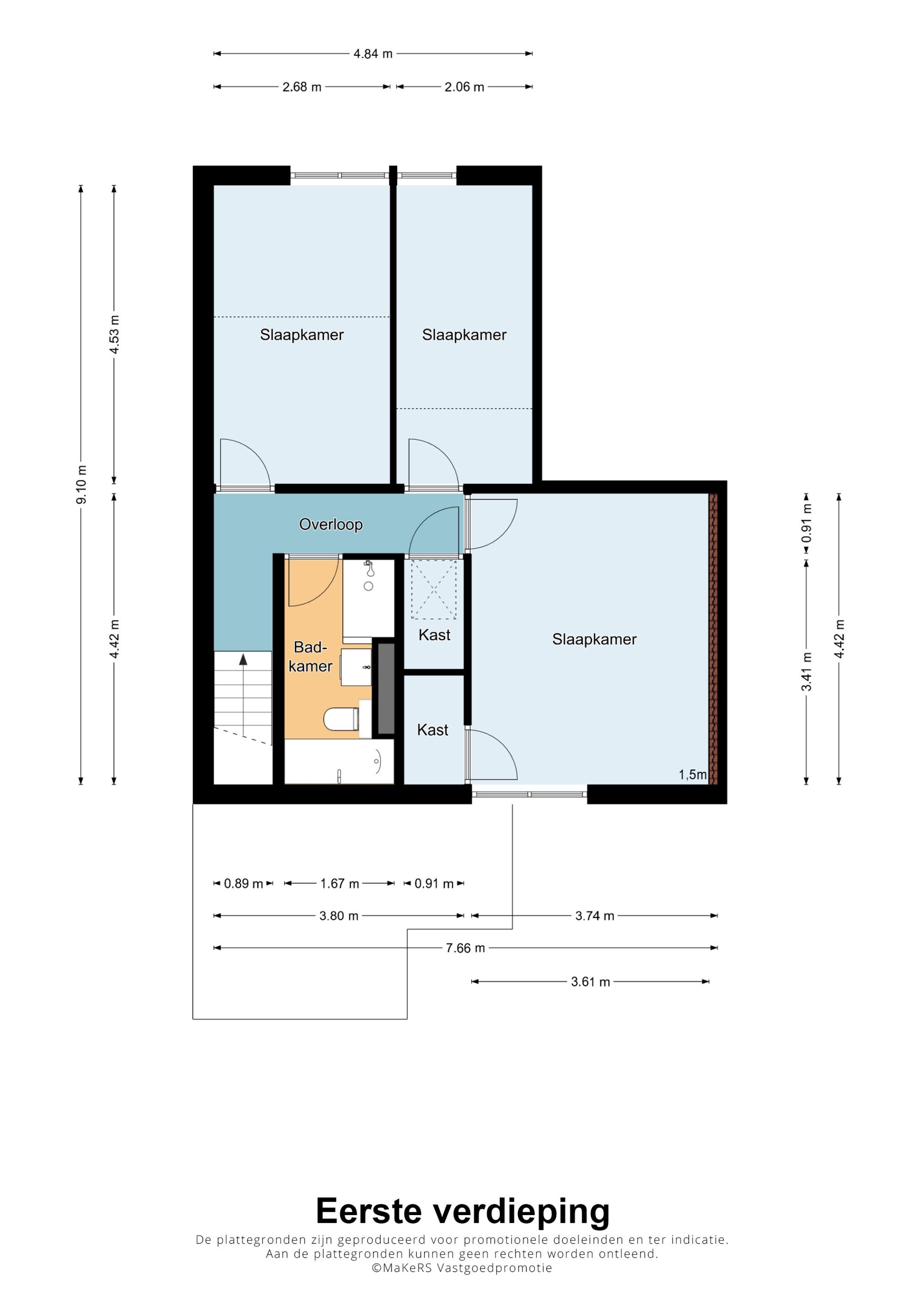Op de eerste verdieping bevinden zich drie slaapkamers, waarvan twee kamers zijn uitgerust met een handige (opberg)vliering. De kamers zijn licht en praktisch ingedeeld, geschikt als slaap-, werk- of kinderkamer. Alle ramen zijn voorzien van horren en rolluiken, waarvan een rolluik elektrisch bedienbaar is.