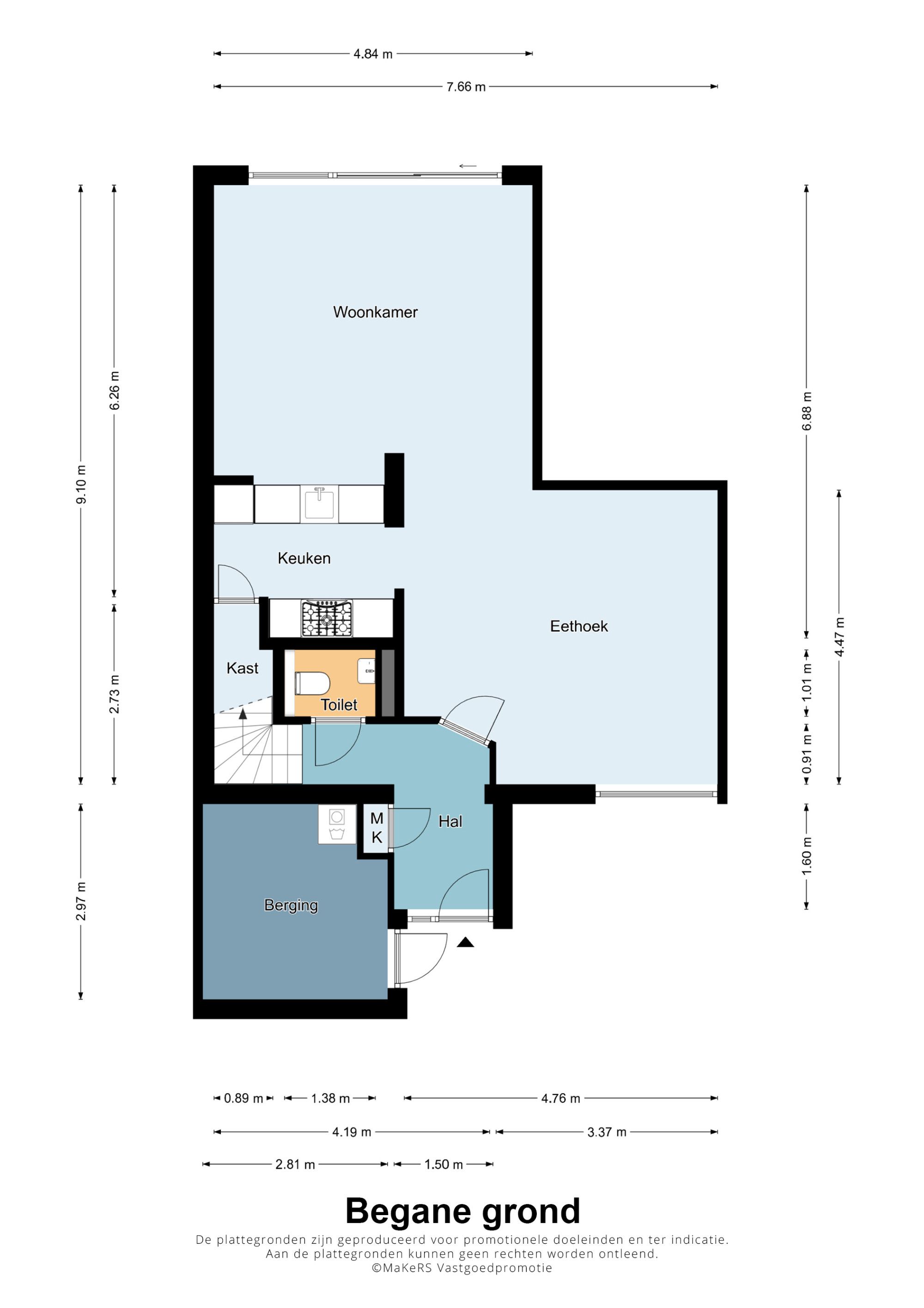 Via de ruime oprit bereik je de entree van de woning. De ontvangsthal is praktisch ingedeeld en voorzien van een apart toilet met fontein en mechanische afzuiging. Vanuit de hal zijn de woonkamer en de trapopgang naar de eerste verdieping bereikbaar.