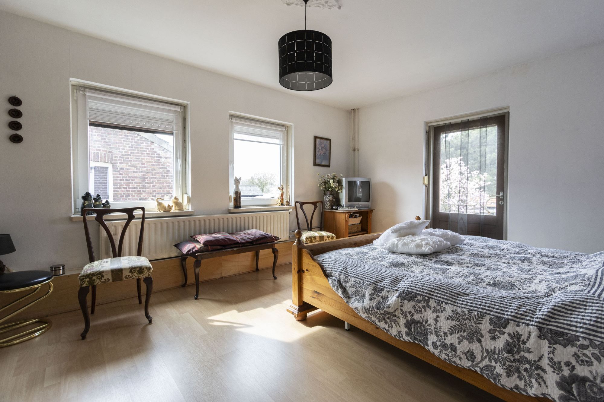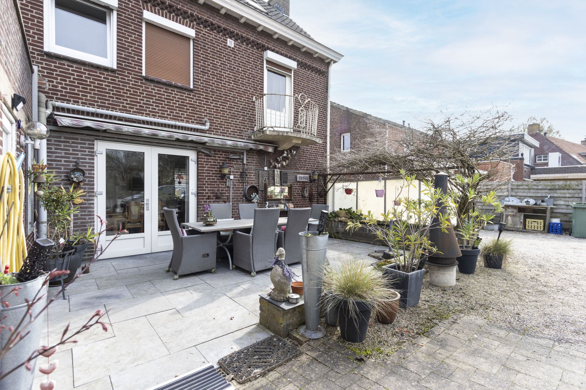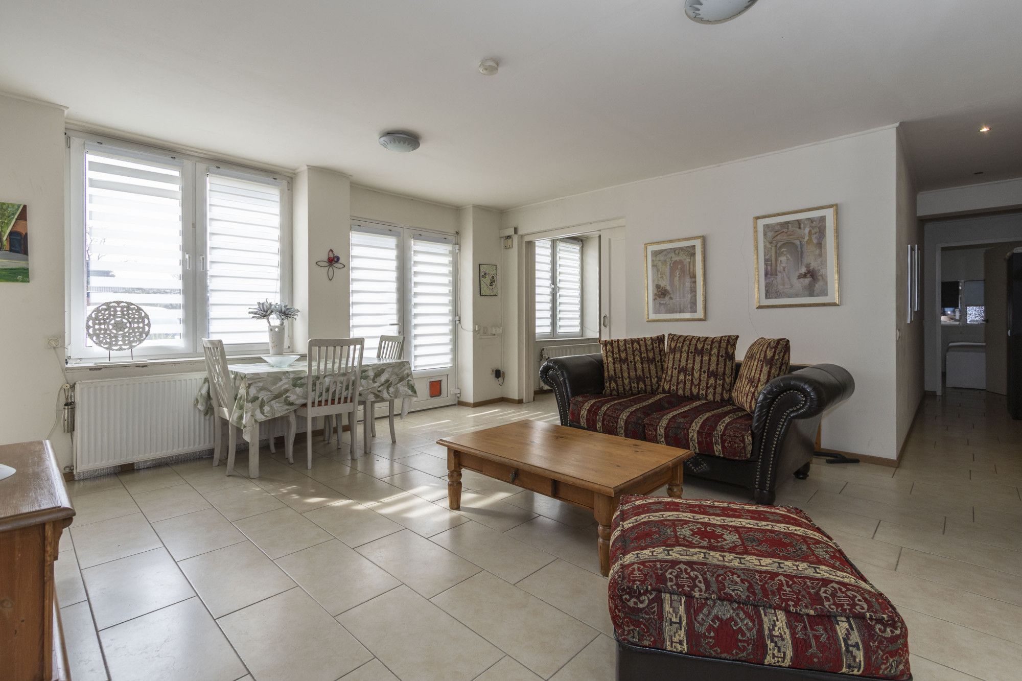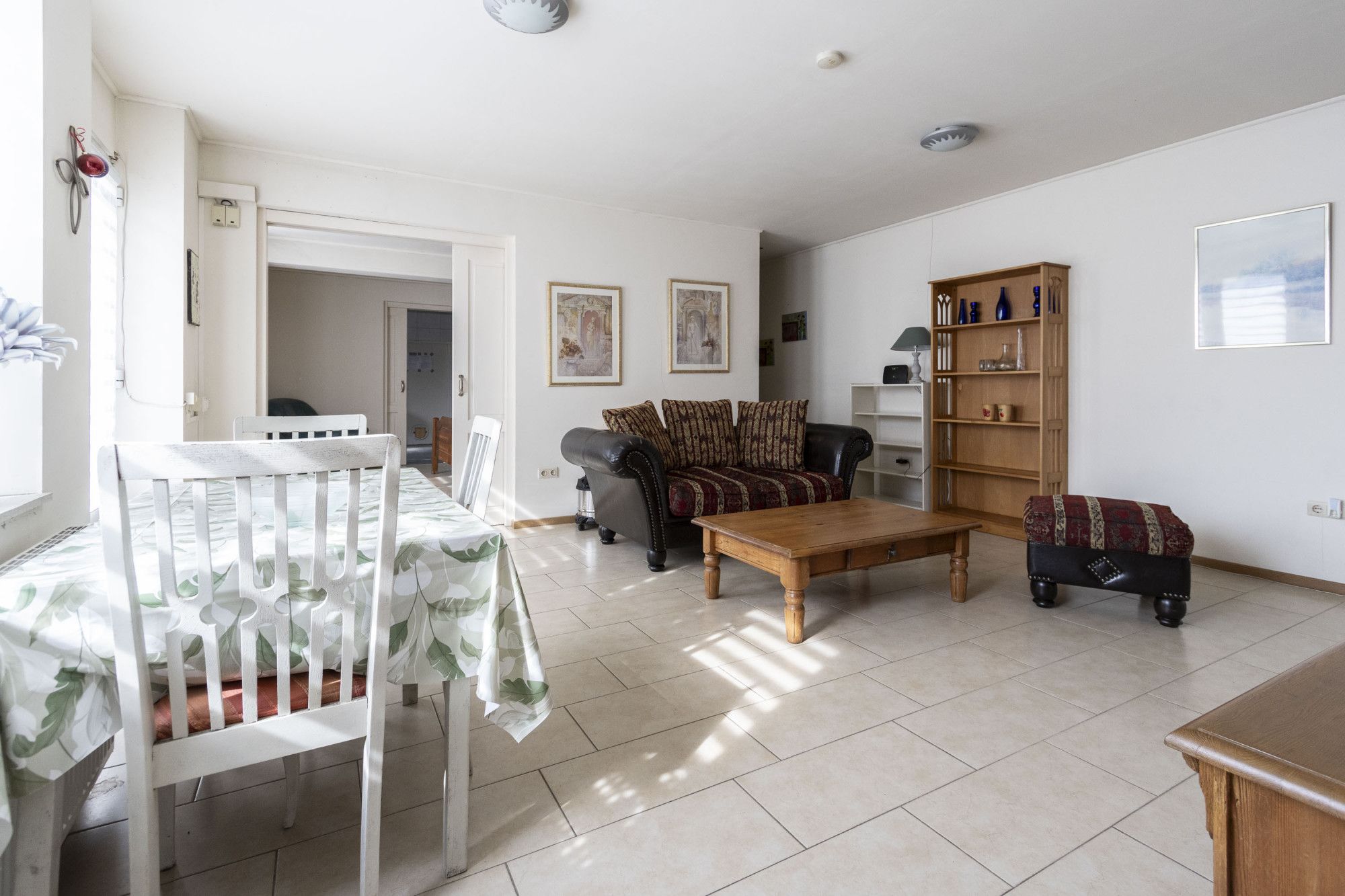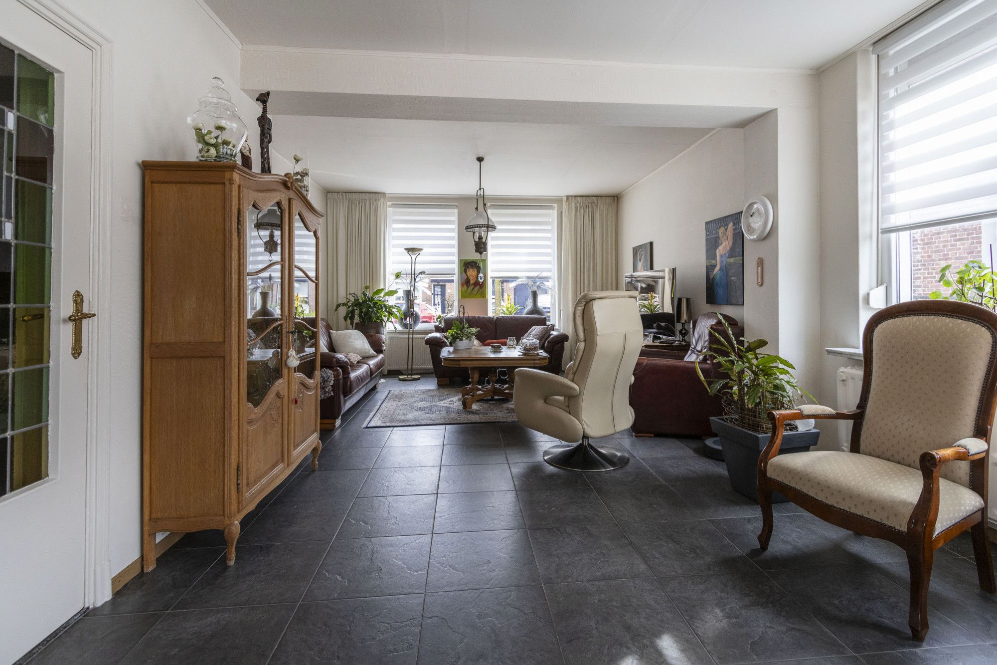 - Grote L-vormige woonkamer met directe toegang tot tuin, terras en achterom
