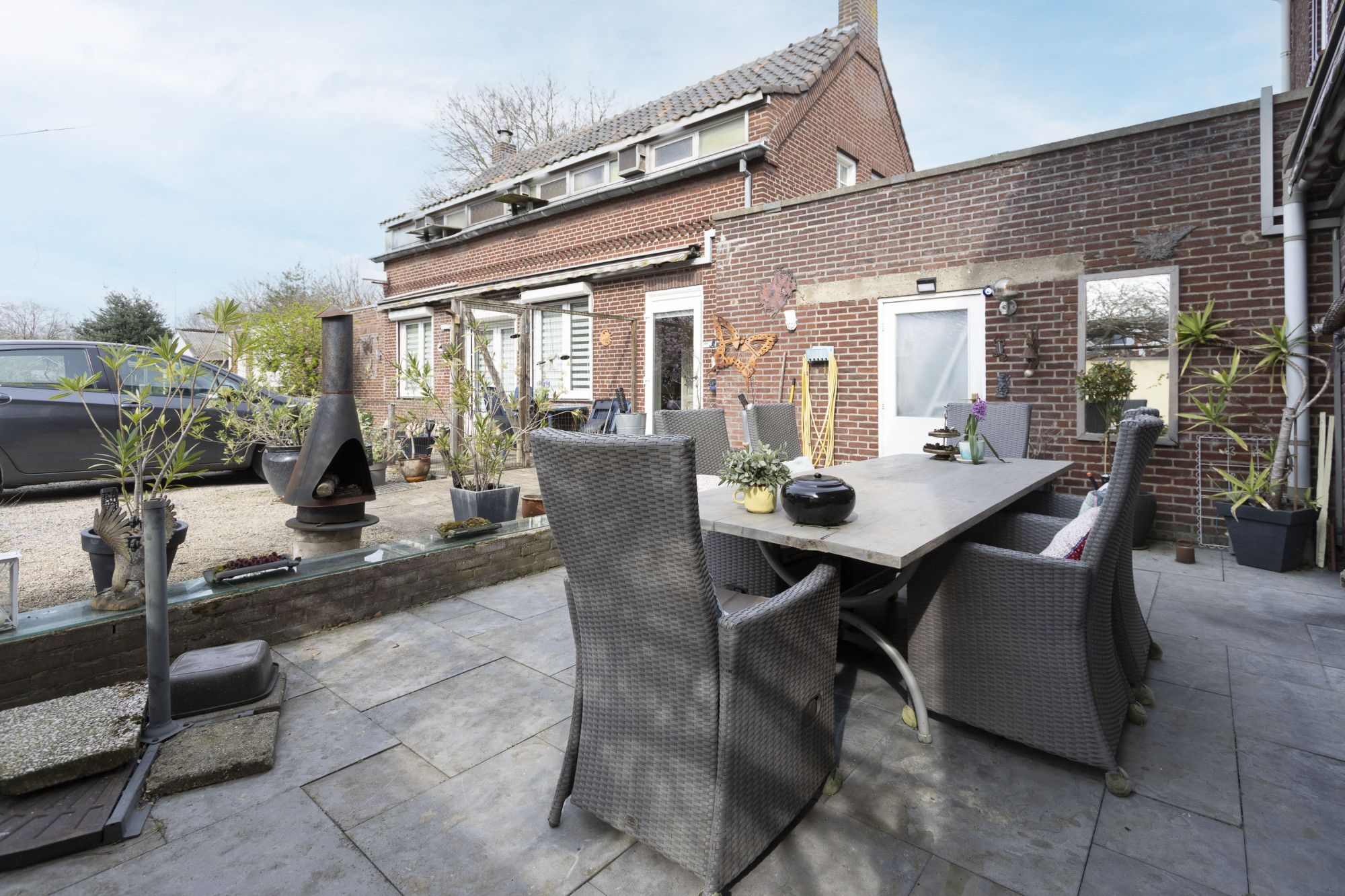 Het perceel van 2005 m² biedt een zee aan ruimte. De achtergelegen tuin biedt veel privacy en geheel naar eigen wens worden ingedeeld. Er zijn twee aparte terrassen, die beide direct aan de woonkamers grenzen. Een fijne plek om te genieten van de rust en het groen.