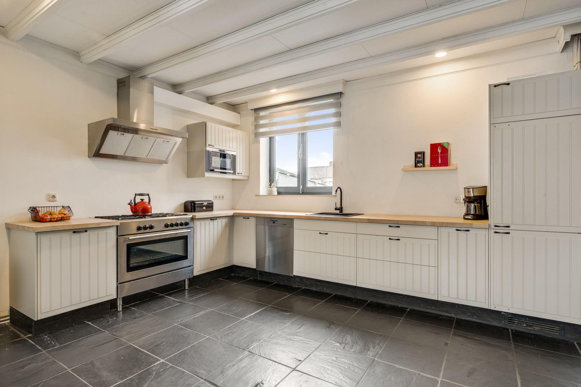 Via de ruime entree met trapopgang, meterkast en toiletruimte met fonteintje bereikt u de royale woonkamer en de multifunctionele ruimte. De zeer ruime woonkamer kenmerkt zich door de prettige lichtinval, de sfeervolle houtkachel en de open verbinding met de woonkeuken. Via openslaande tuindeuren is er direct toegang tot de riante eiken terrasoverkapping, waardoor binnen en buiten naadloos in elkaar overlopen. De woonkeuken met combinatie in hoekopstelling is compleet uitgerust met een 5-pits gasfornuis met oven, afzuigkap, magnetron, koelkast en vaatwasser. Daarnaast is er een praktische schuifkast aanwezig voor extra bergruimte. Dankzij de royale afmetingen vormt deze woonkeuken het hart van het huis: perfect voor lange avonden tafelen met familie en vrienden.