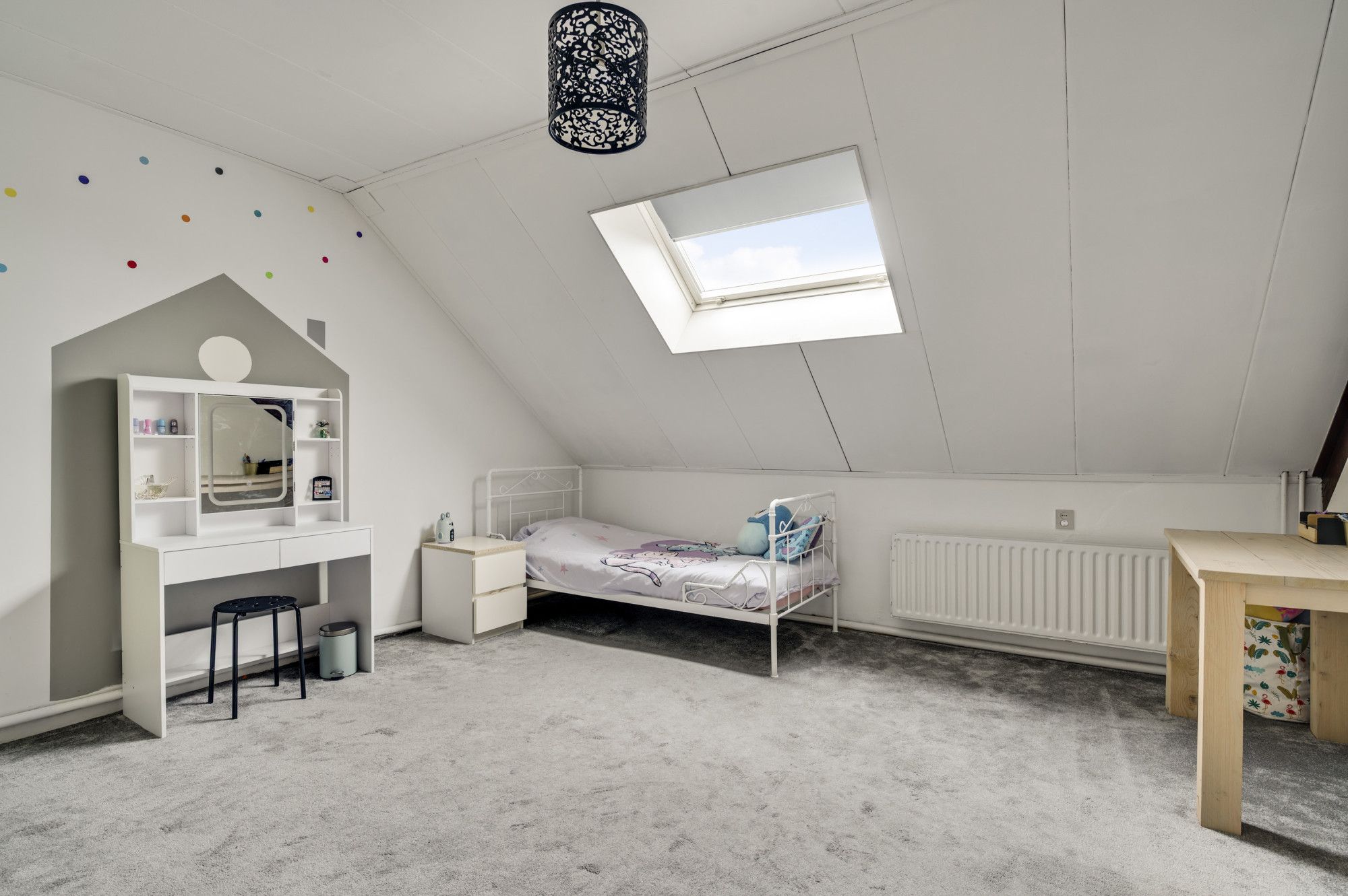 De ruime overloop biedt toegang tot nog drie ruime slaapkamers en de tweede badkamer. Eén van de slaapkamers beschikt over een inloopkast en een schuifpui, wat zorgt voor extra licht en een ruimtelijk gevoel. De 2e badkamer is ingericht met een douche, wastafel en toilet. Tevens bevindt zich op deze verdieping de opstelling van de cv-ketel (Daalderop HR, eigendom, ca. 2006) en nog extra bergruimte.