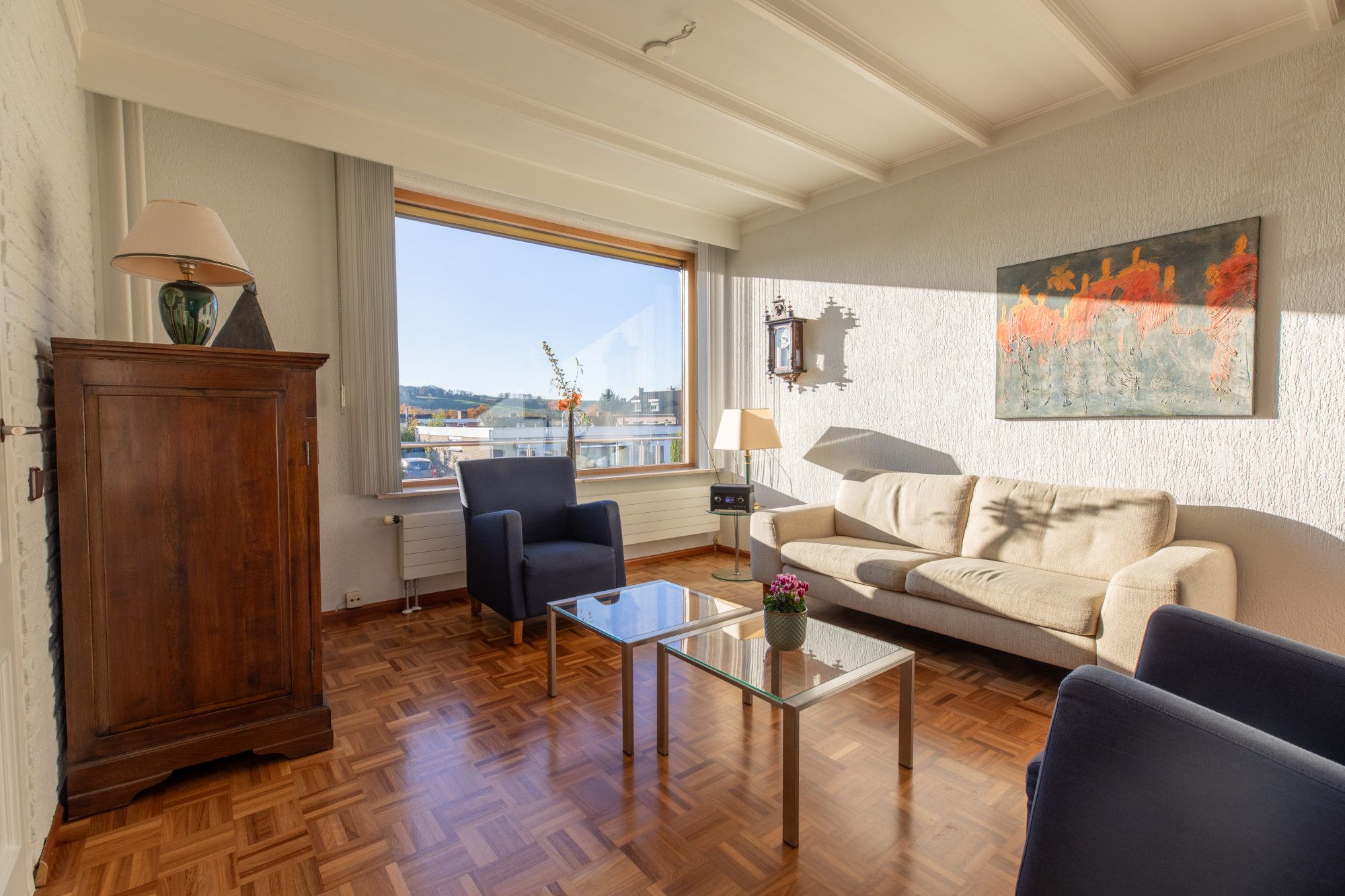 De woonkamer (7.44 x 3.70 m) voorzien van mooie lichte parketvloer en schuifpui naar achtertuin.
